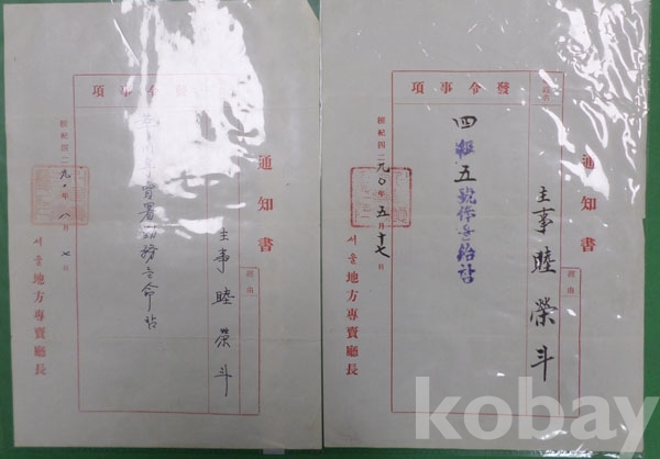 [12] 1959-61년 서울지방전매청 발령통지서 2부 (서울지방전매청장)