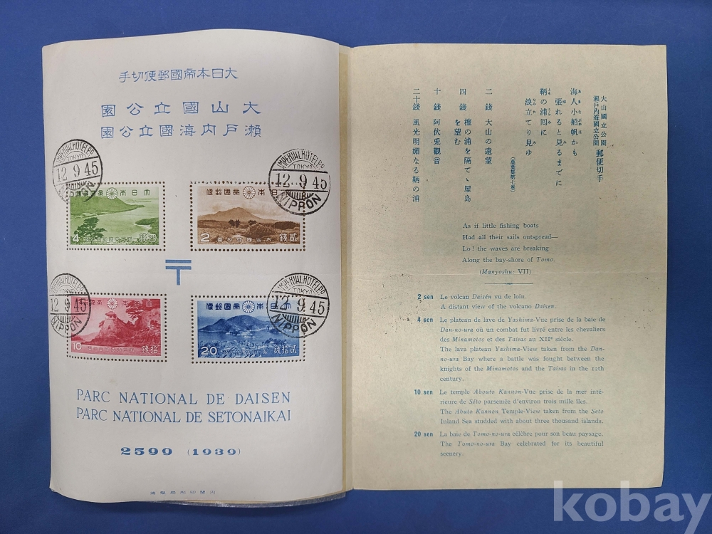 [일본] 1939.4.20.다이센.세토나이카이 국립공원우표 안내장
