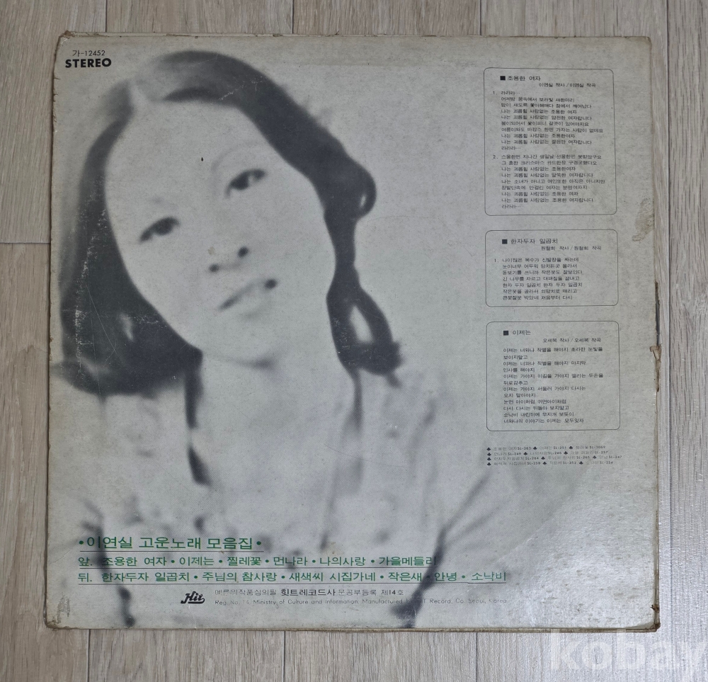 | 자켓상태 | VG : 주름, 접힘, 모서리 찢김 다수 | 음반상태 | VG : 생활 기스 다수, 가벼운 노이즈 존재 | 발매정보 | 초반 | 가사지여부 | 유 |
