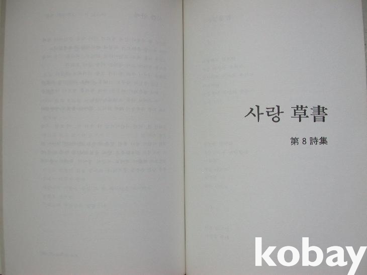 서문은 없으며 바로 <차례>가 시작된다. 제1시집 <목숨>부터 제10시집 <빛과 고요>까지의 시집들 목차가 모두 수록되어 있다.