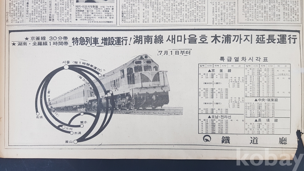 **** 1976.06.25(동아일보)/경부선, 호남선, 전라선특급열차 운행 횟수 증설 및 호남선 새마을호 목포까지 연장 운행 광고포함/약 8면