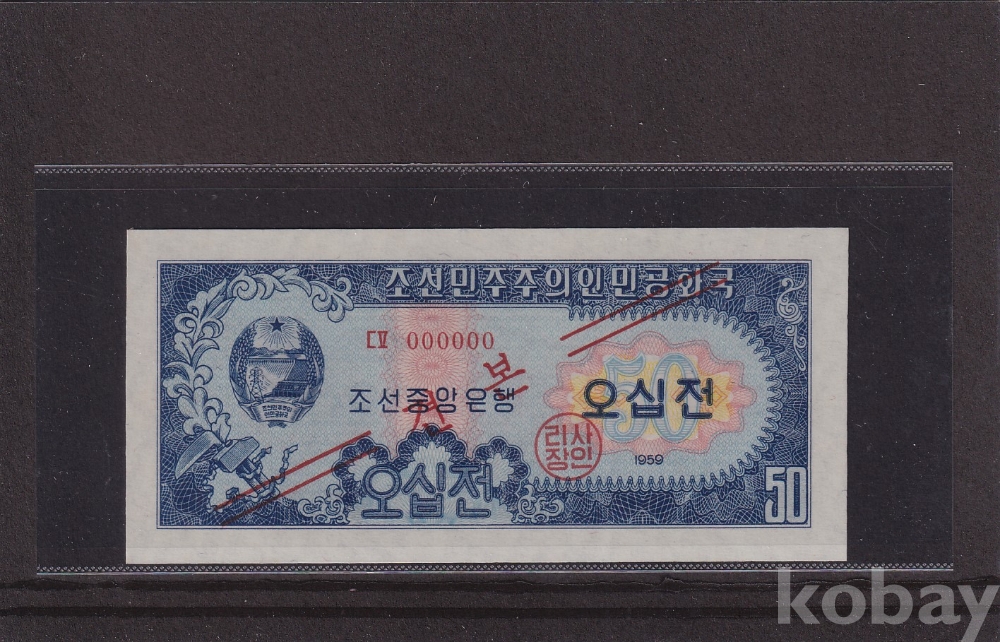 - 윗동네 견본권 1959년 50전 견본 지폐 - 조선중앙은행