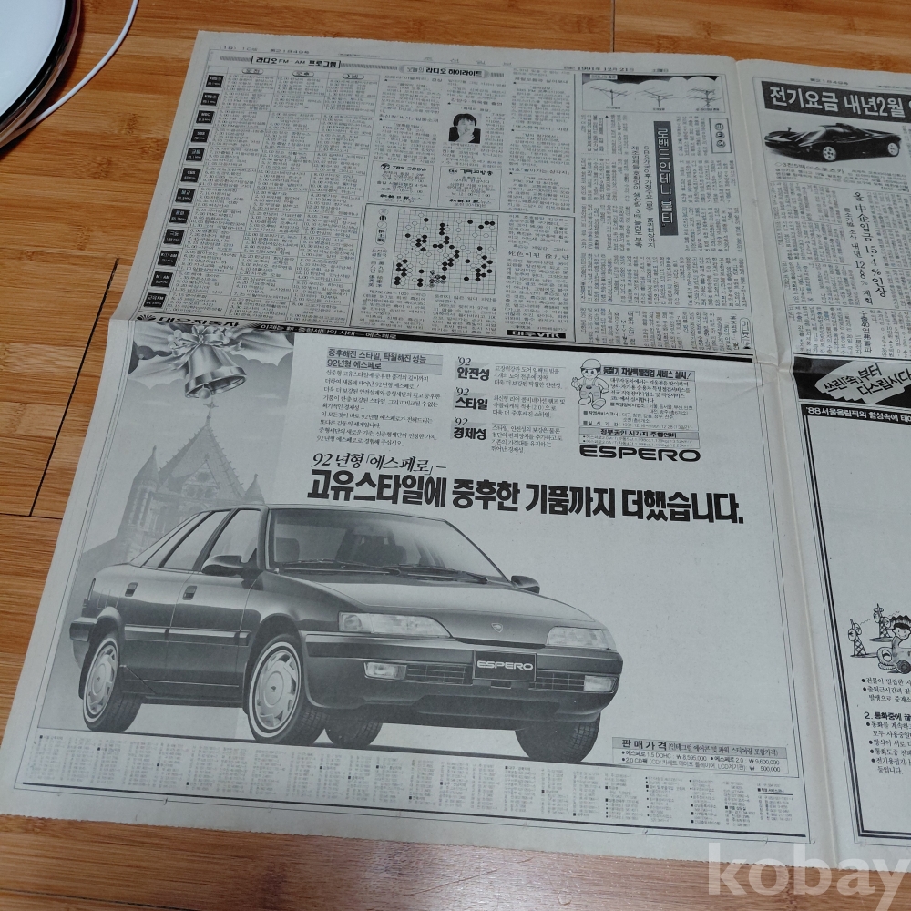 대우 에스페로 승용차 ㆍ한국이동통신 광고 조선일보 91년12월21올려드립니다