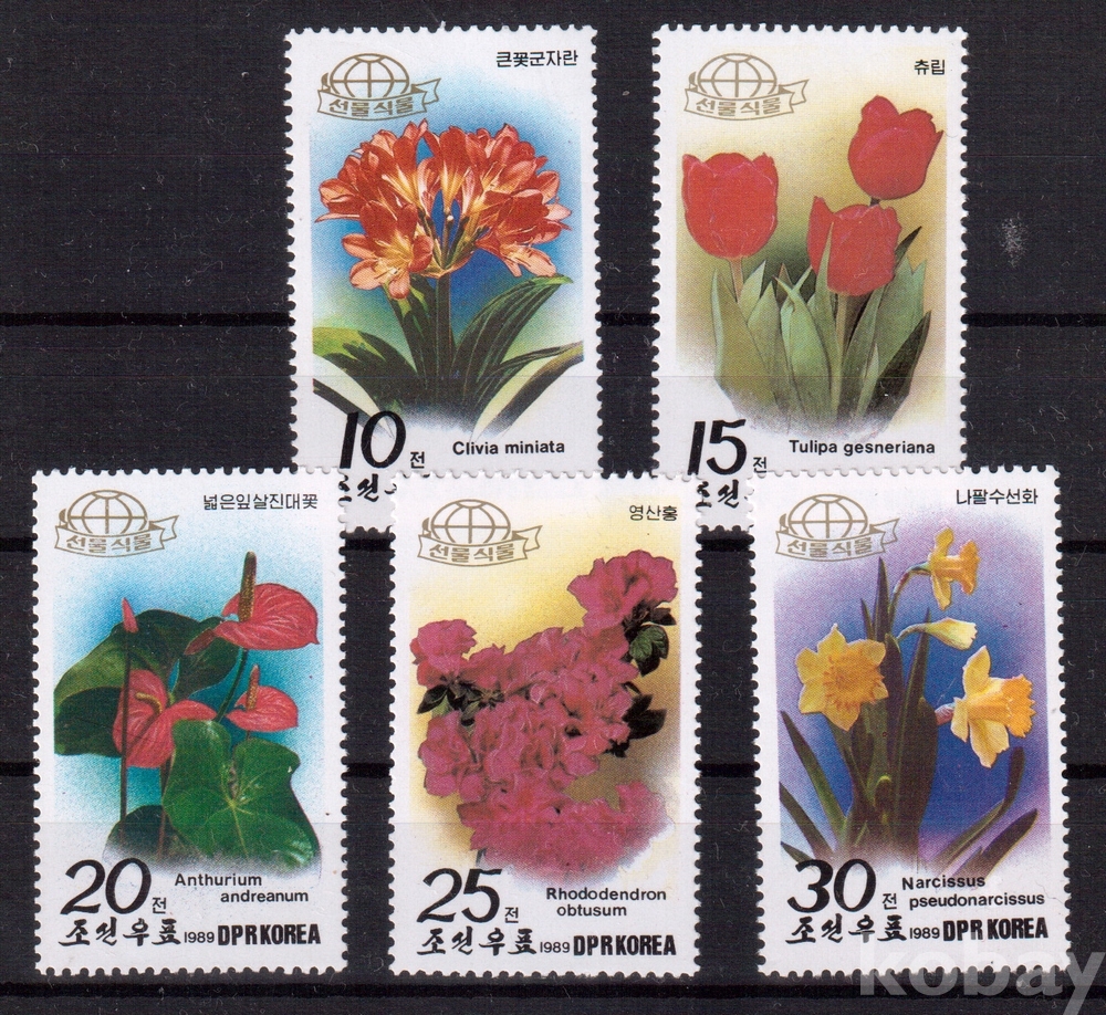 (꽃) 북한 1989.8.19 선물꽃 5완 MNH