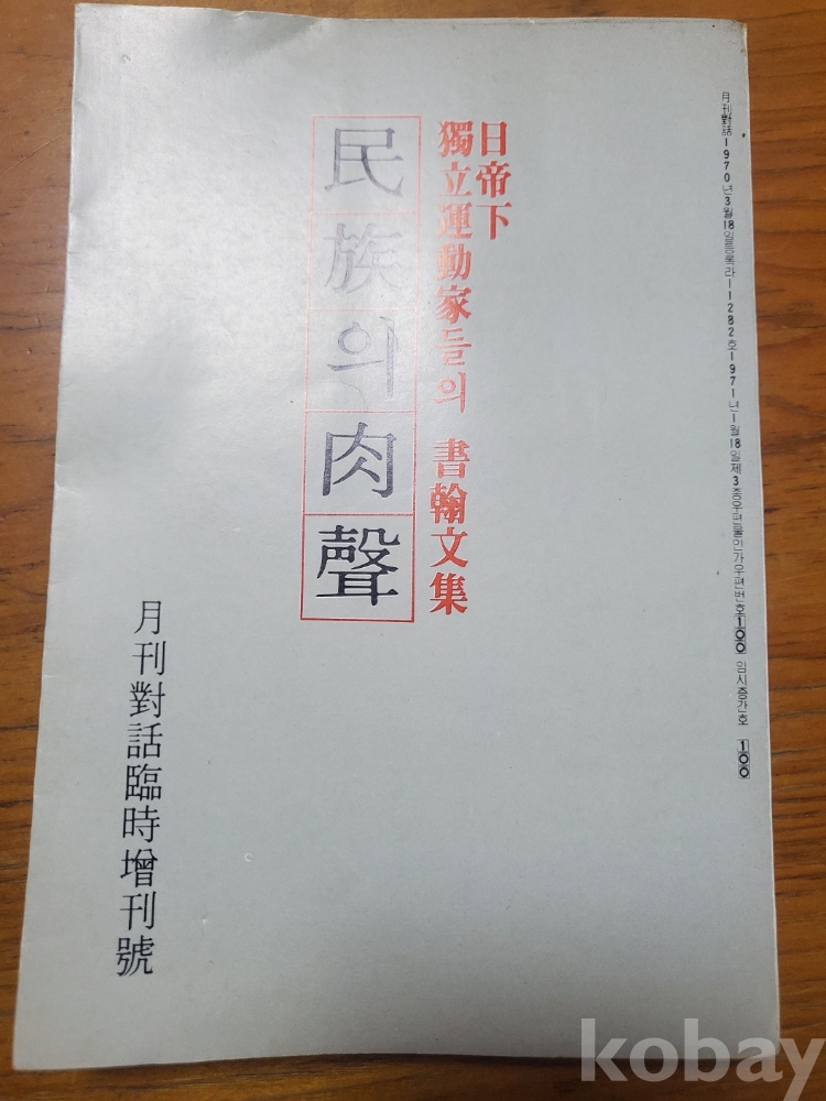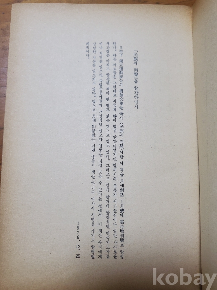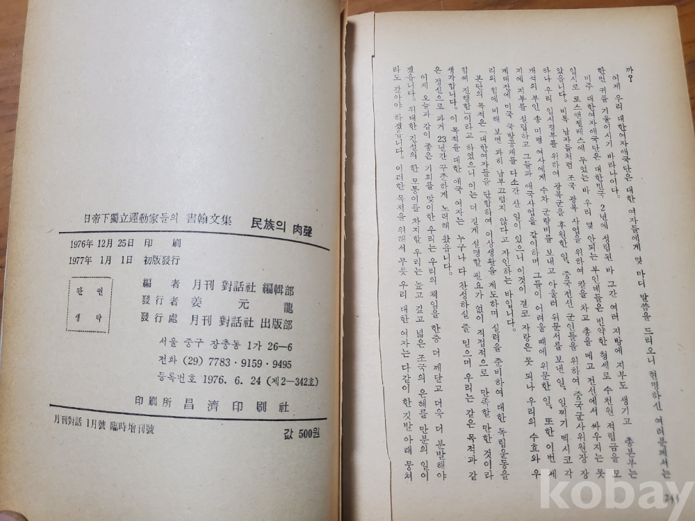 1. 민족의 육성, 월간 대화사 출판부, 1977년, 244쪽, 상태 상, 사진 참조