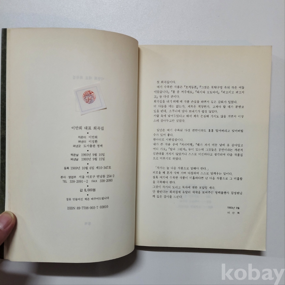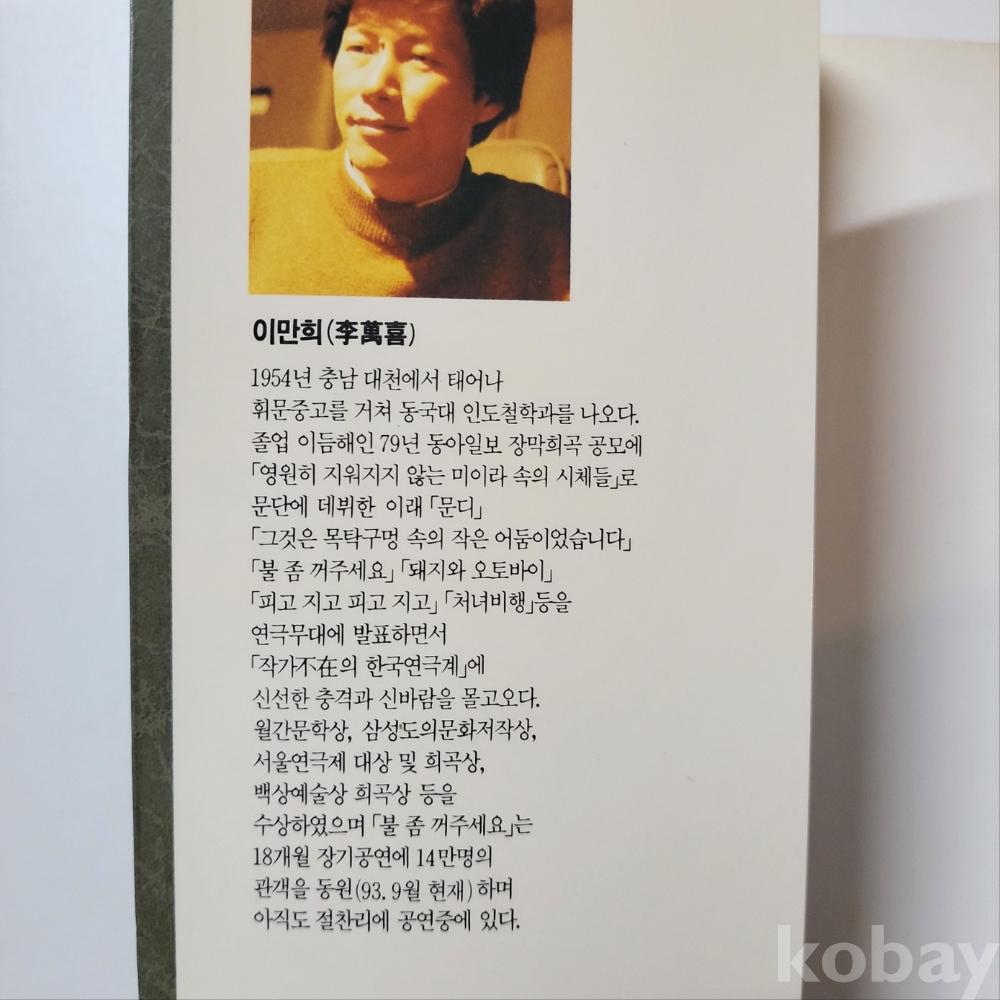 [희귀본] 이만희 대표희곡집 (청맥출판/93년) : 세월흔적외 상태 좋음/중급/서고T302