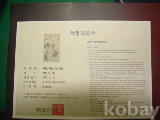 # 코베이 거래보증서 있음. 2폭 중 1폭임.