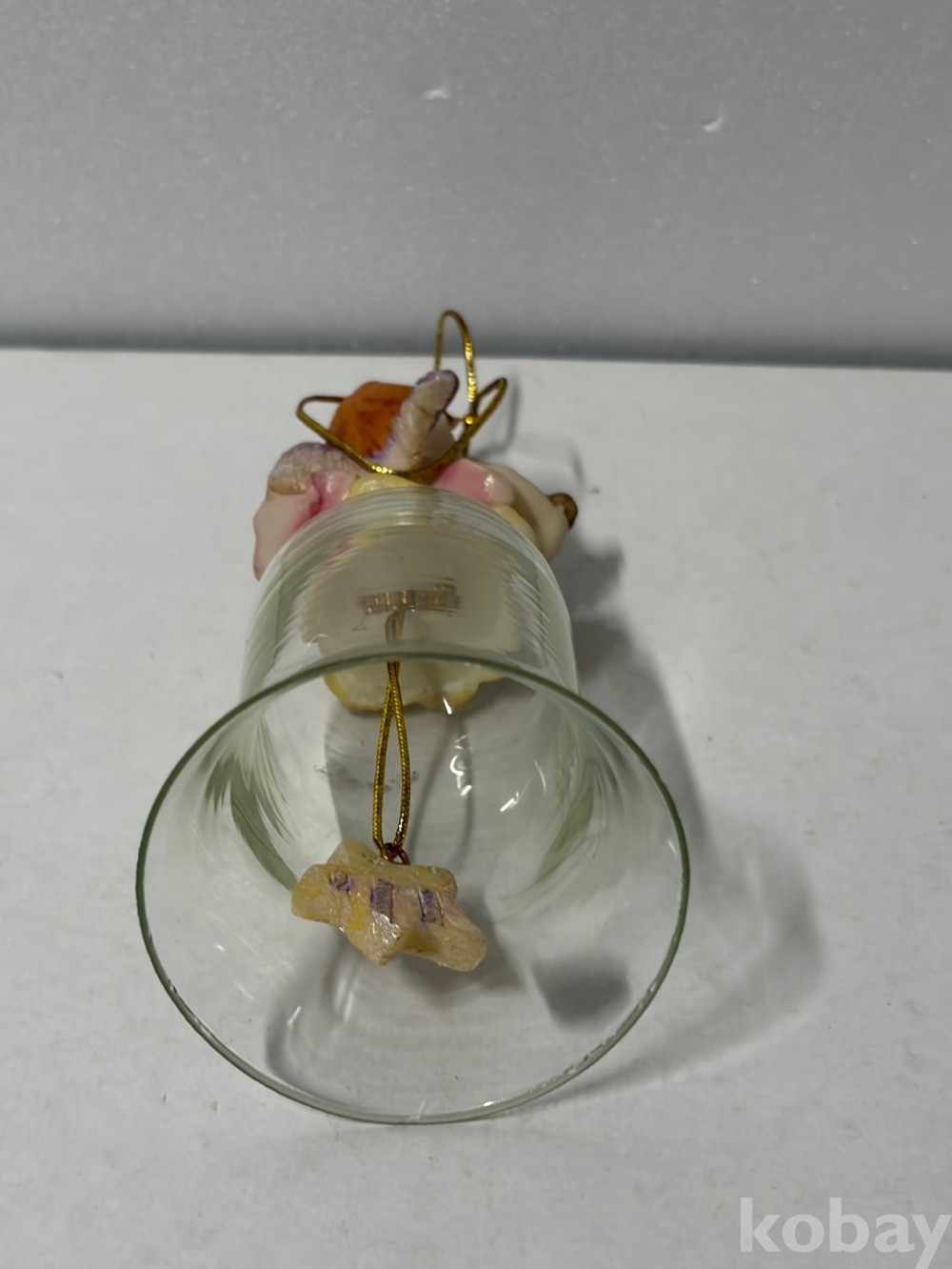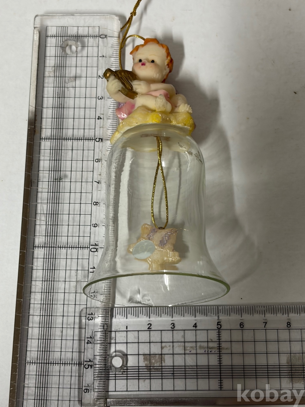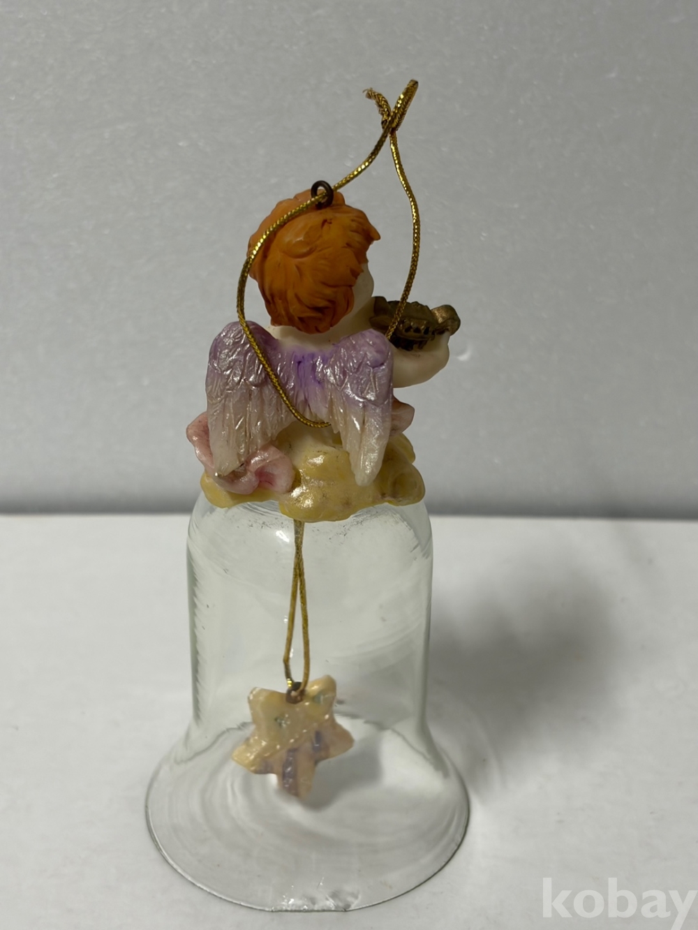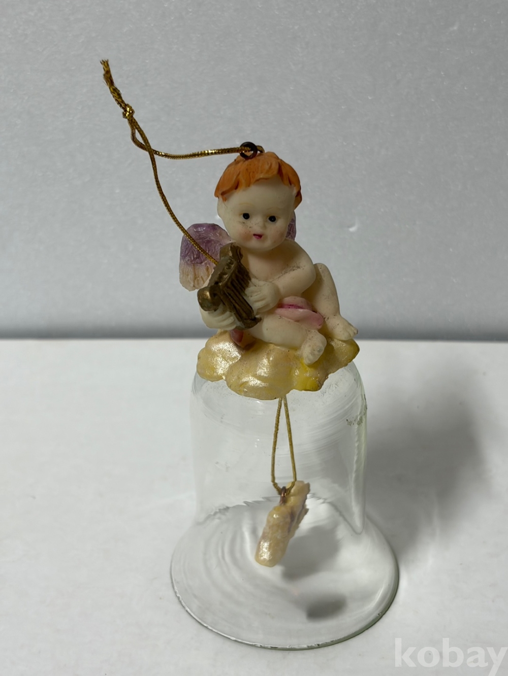 구름 위에 앉아 있는 아기 천사 유리 종입니다.