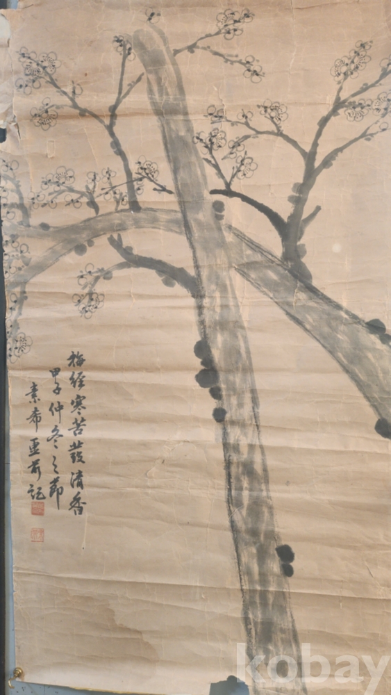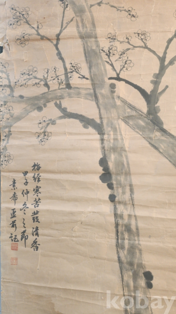 짱짱한 연대 갖춘 수묵화로 크기가 큰 매화도입니다