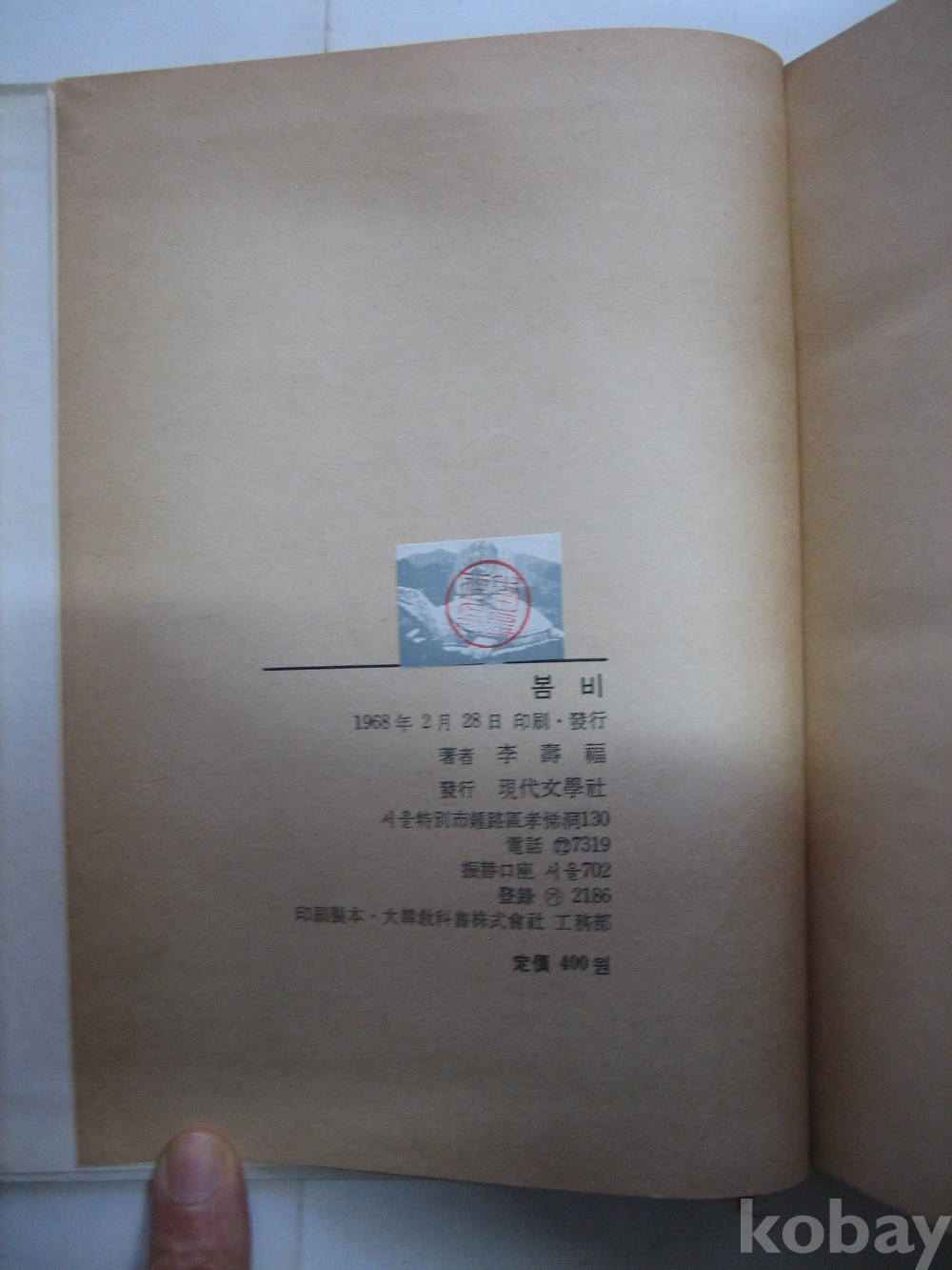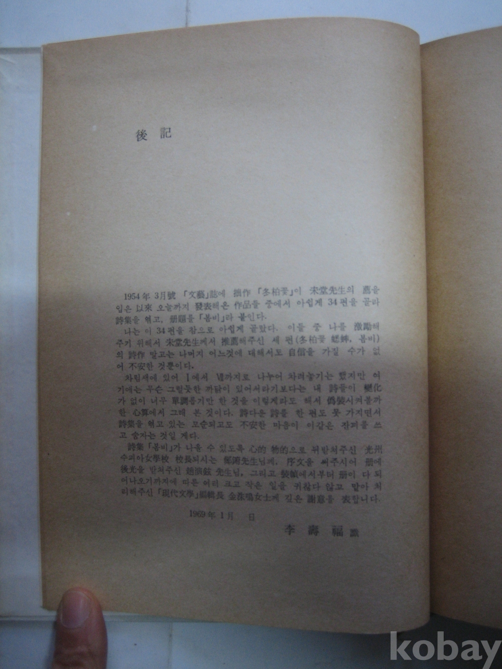 1. 제목 : 이수복 시집- 봄비 단권(1968년 초판)