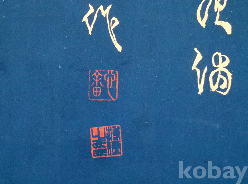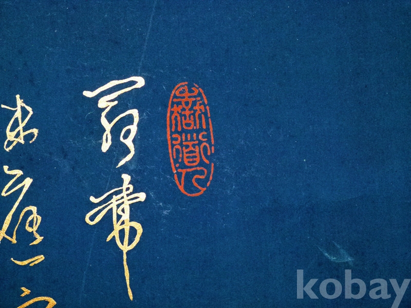 족자 뒷면 상단 전소장자의 표제글씨와 소장낙관까지 그대로 보존되어 있습니다.