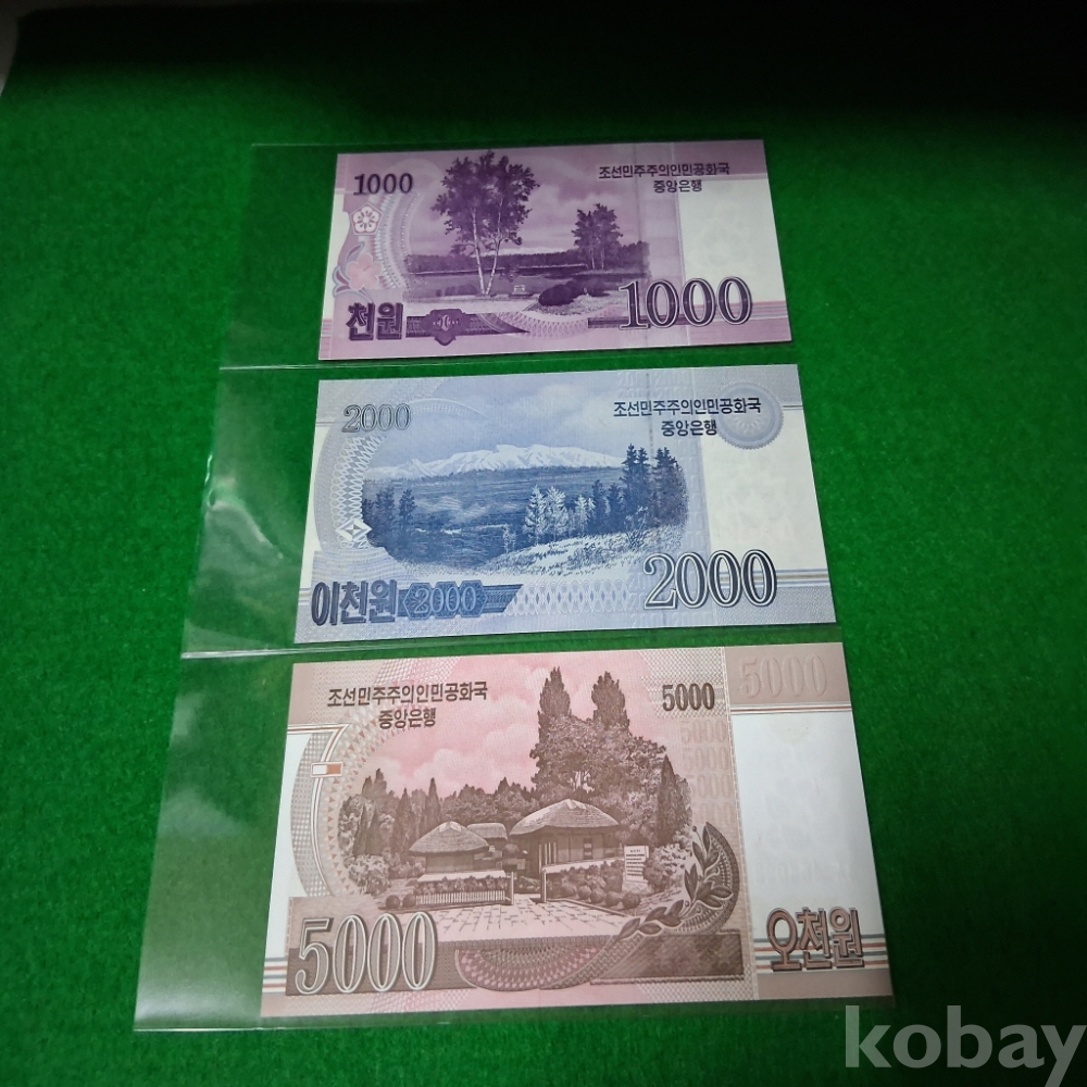 북한  1000,2000,5000원 3종