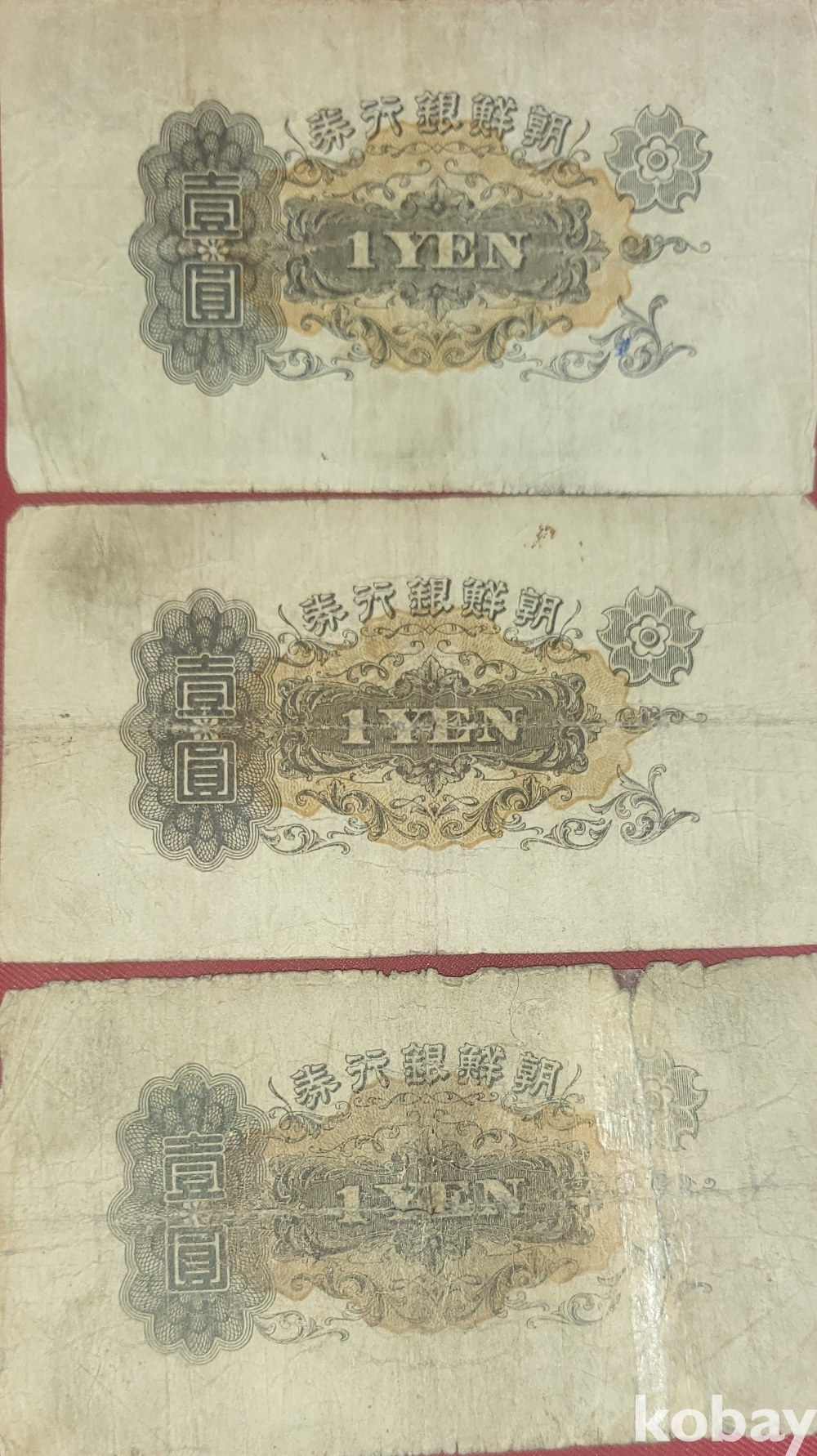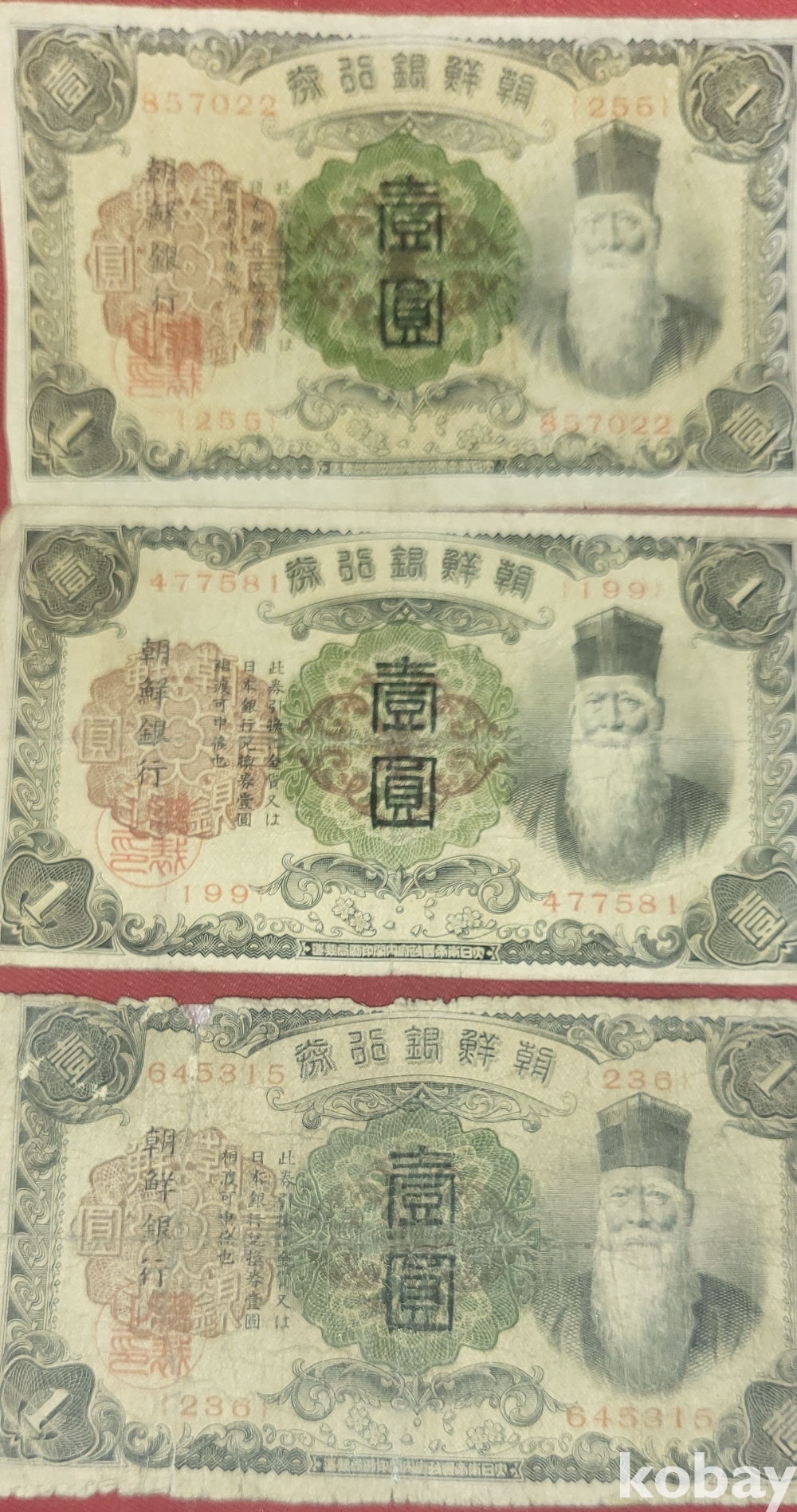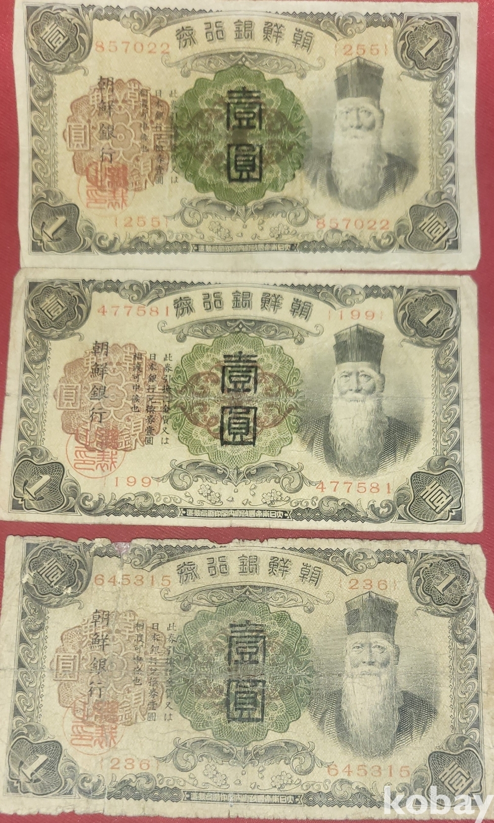 조선은행권 일원짜리 지폐 3장 일괄입니다,