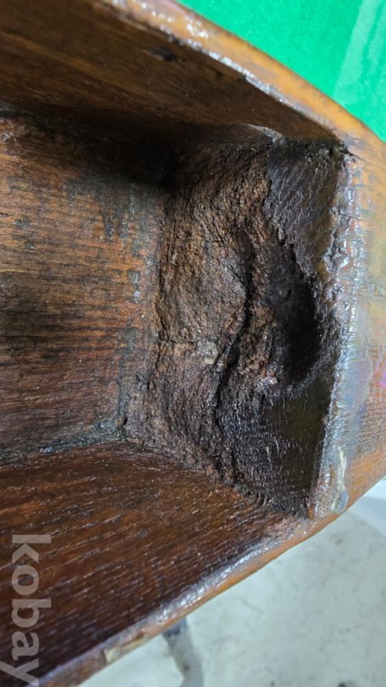 이 기물의 가장 큰 매력은 오랜 세월 사람의 손을 타며 만들어진 **'반질반질한 손떗물'**입니다. 인위적으로는 흉내 낼 수 없는 깊고 은은한 광택이 나무의 결을 더욱 돋보이게 합니다.