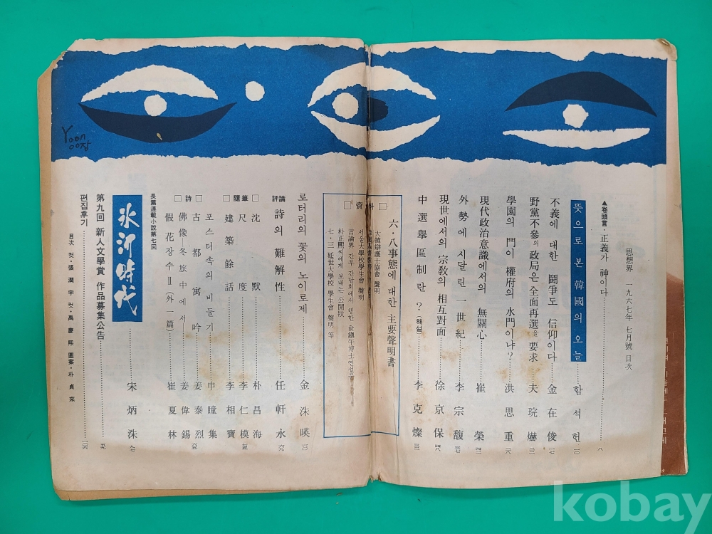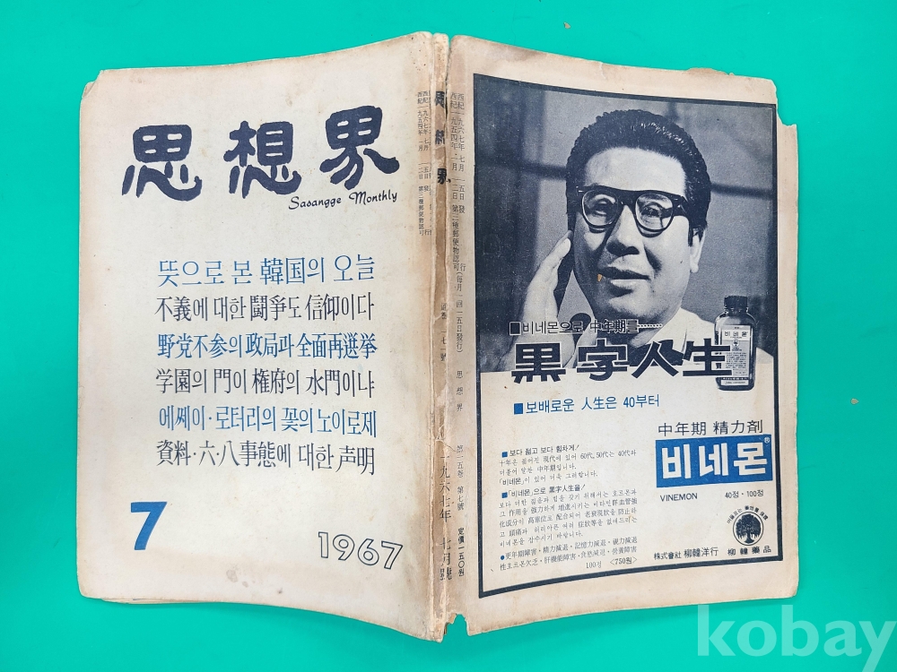 ▶사상계(1967년 7월호)/사상계사,106쪽/전체적으로 헐었고, 얼룩있음
