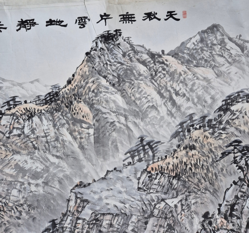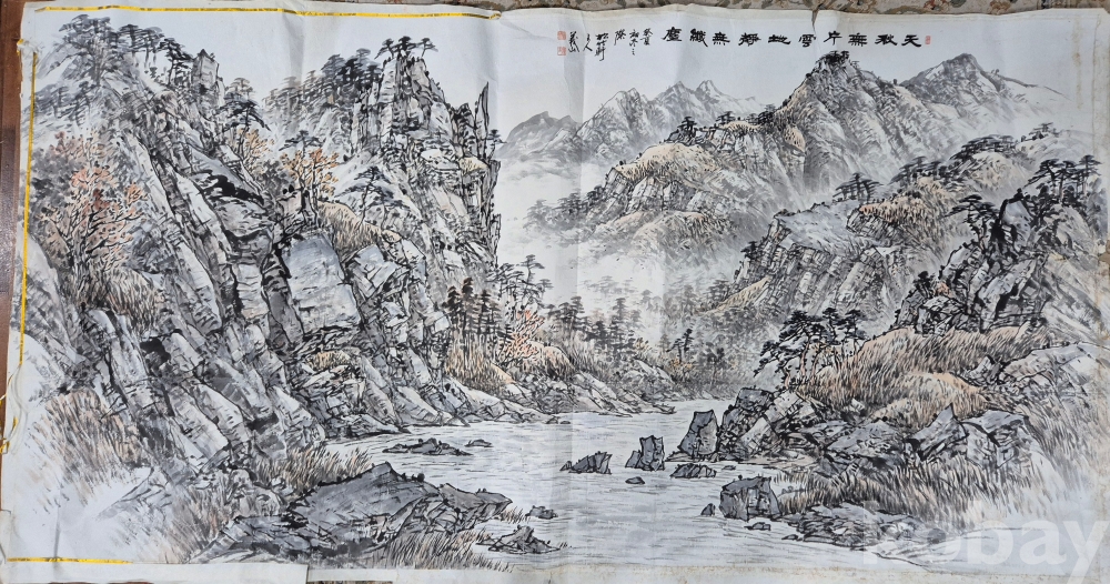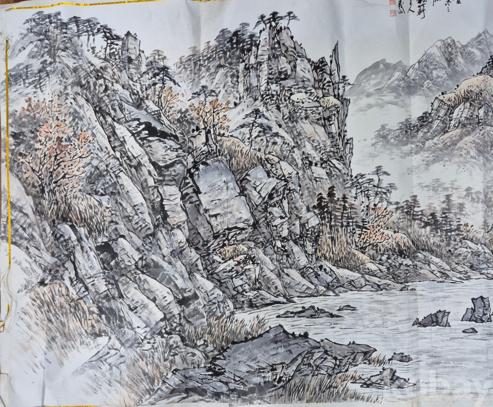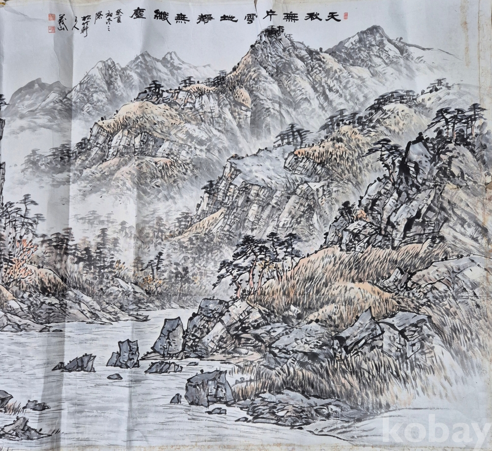 독특한 기법으로 잘 그려진 상당한 수준의 화가분 작품 추정되는 대형 추경 산수화'이오니 작품 이미지상