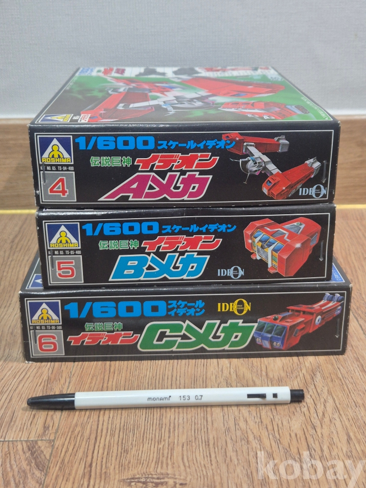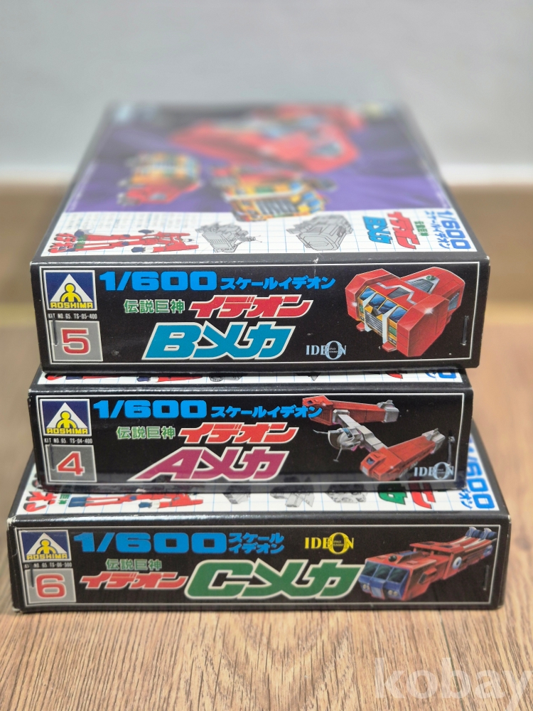 제품특성상 사용감 많이 있고 오래되었습니다. 1/600 스케일 아오시마 이데온 박스 3개 (4,5,6번) 일괄로 올립니다.