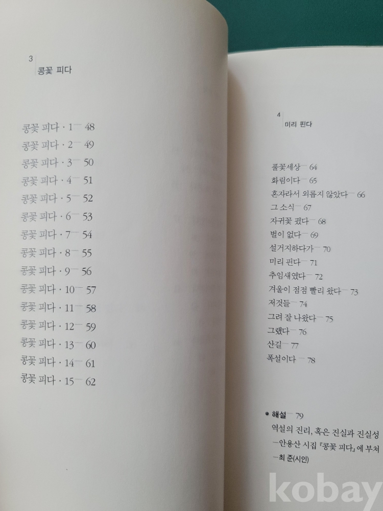 시집의 3부에 실려 있는 「콩꽃 피다」 연작이 백미.
