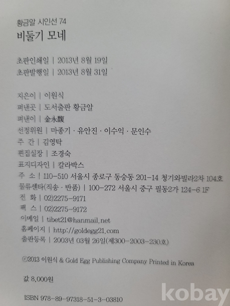 '황금알'에서 '황금알 시인선[74]'으로 발행.