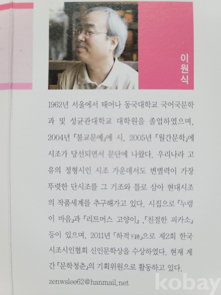2011년 제2회 한국시조시인협회 신인문학상을 수상한 時調 시인(李葾植).