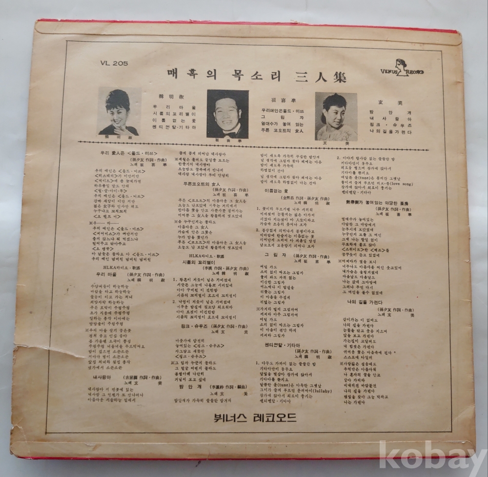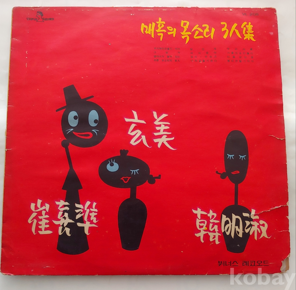매혹의목소리3인집(한명숙,최희준,현미)Lp/우리 애인은 올드미스,밤안개,우리마을