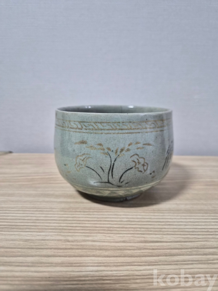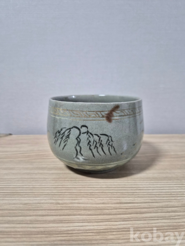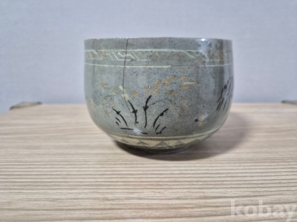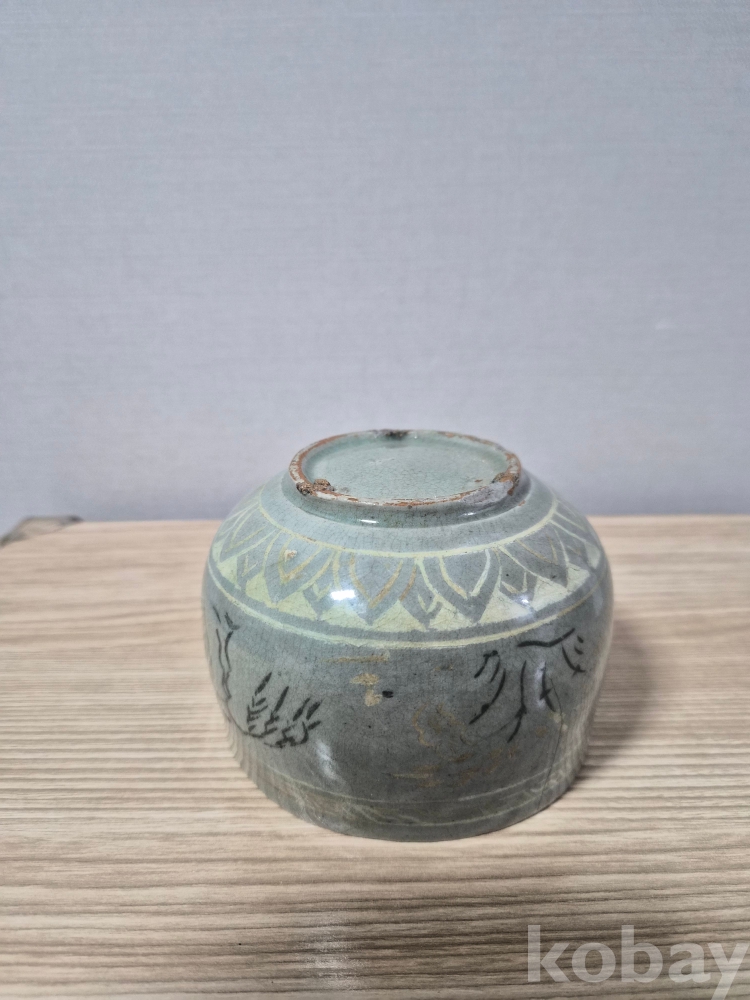 청자흑백상감 수류문에 오리가8마리가있고 구연부 에는내문이잘시문되어있습니다.굽위에는 연판문이 면상감으로 잘. 시문되어있습니다.상태는실유1곳있으며 통다완으로 사용히기좋은 규격입니다 .굽바닥에는 태토받침으로 되어있고 청자통다완은 아주귀한완입니다.유약상태는 아주좋으며 겨울에 말차용으로 사용하기좋을듯하네요. 아직감정을 받지않은 상태이며 사진참조하시고 안목으로 신중한 응찰 부탁드립니다 좋은감상하세요