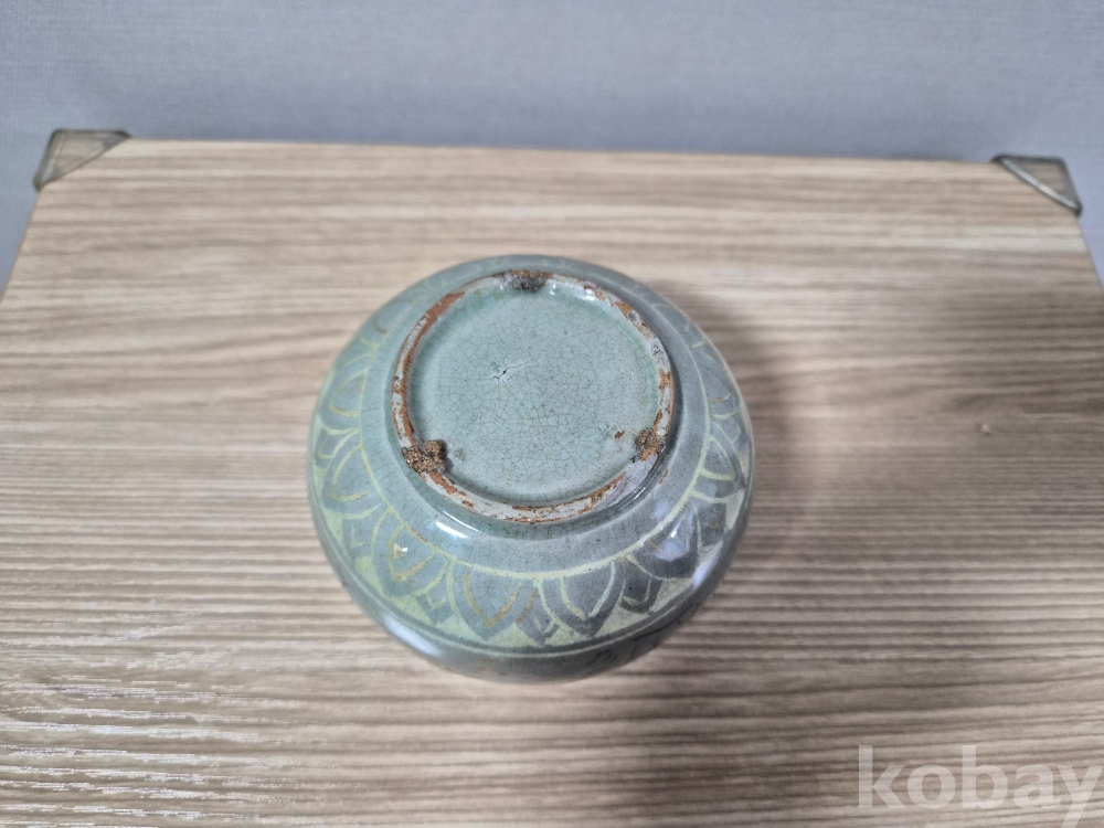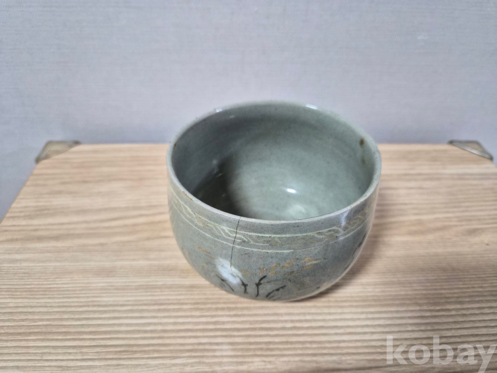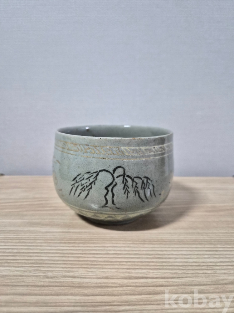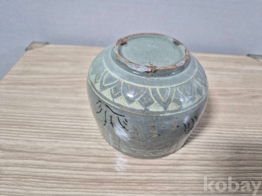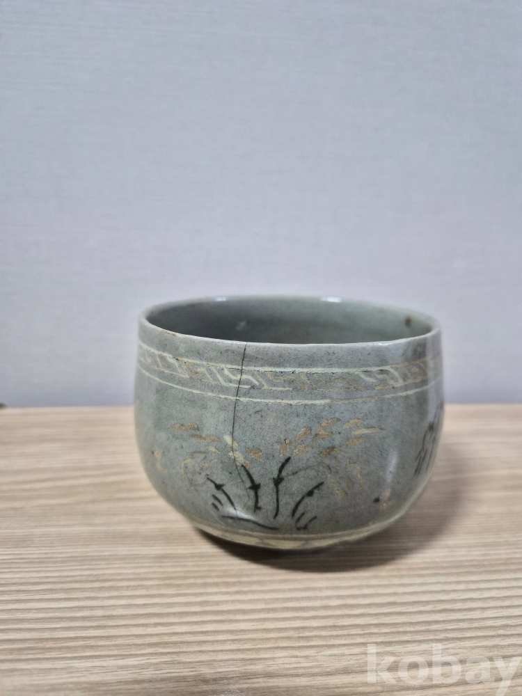 청자흑백상감 수류문에 오리가8마리가있고 구연부 에는내문이잘시문되어있습니다.굽위에는 연판문이 면상감으로 잘. 시문되어있습니다.상태는실유1곳있으며 통다완으로 사용히기좋은 규격입니다 .굽바닥에는 태토받침으로 되어있고 청자통다완은 아주귀한완입니다.유약상태는 아주좋으며 겨울에 말차용으로 사용하기좋을듯하네요. 아직감정을 받지않은 상태이며 사진참조하시고 안목으로 신중한 응찰 부탁드립니다 좋은감상하세요