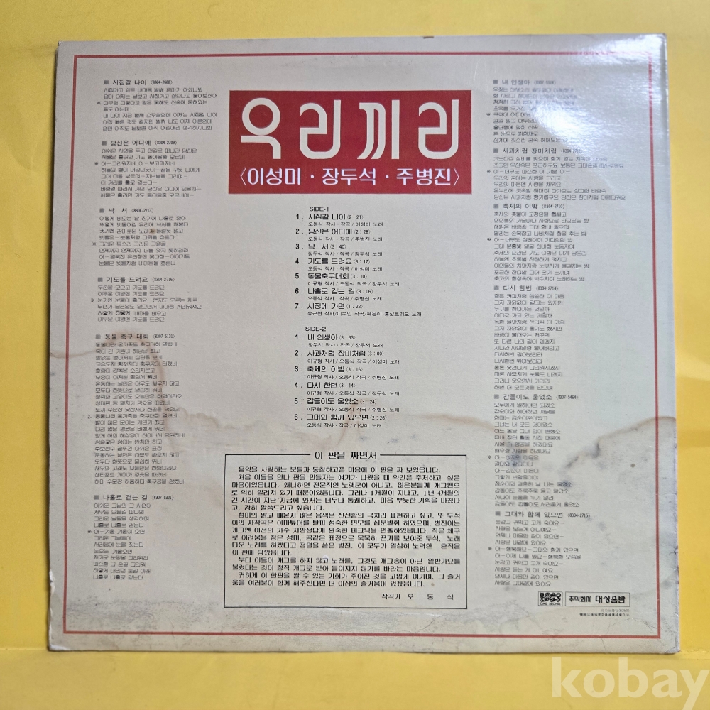 | 자켓상태 | VG : 주름, 접힘, 모서리 찢김 다수 | 음반상태 | EX : 재생에 영향 없는 가벼운 기스 존재 | 발매정보 | 초반 | 가사지여부 | 무 |