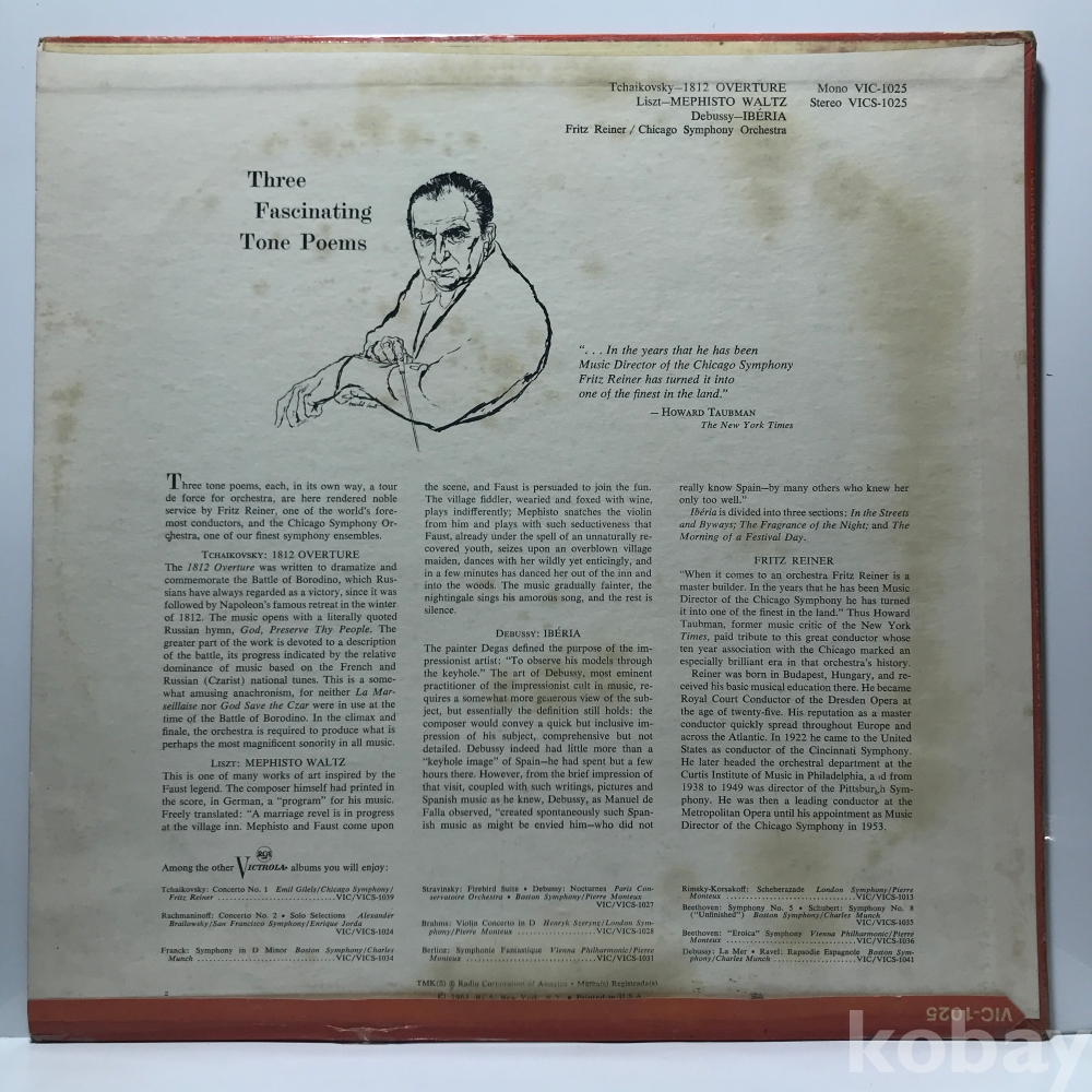 LP 29,300-135 Tchaikovsky - 1812 Overtune/ Liszt- Mephisto Waltz/ Dubussy- Iberia . 수입 자켓 EX 알판 EX