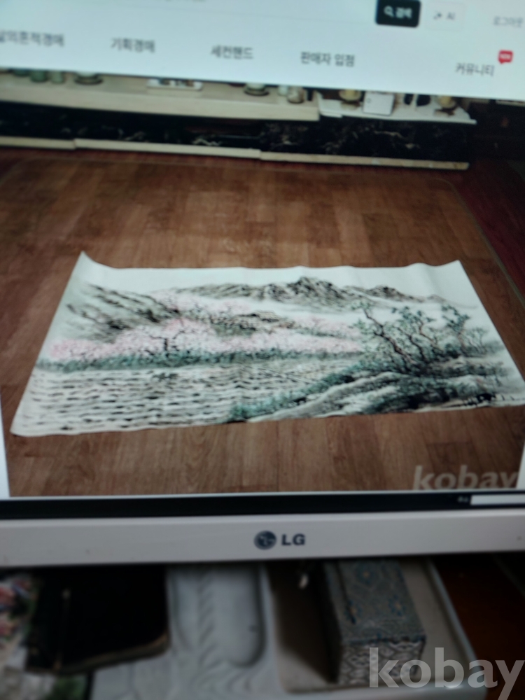 송천화백님의 청전 이상범류 장식성이 좋은 춘경 산수 풍광입니다.