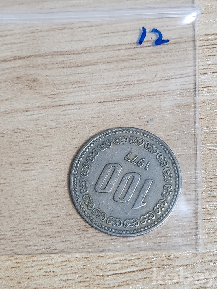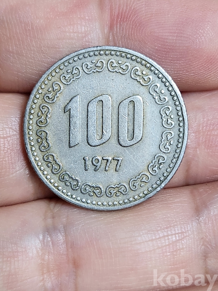 한국주화 특년도 1977년 100원 눈도안 다살아있음