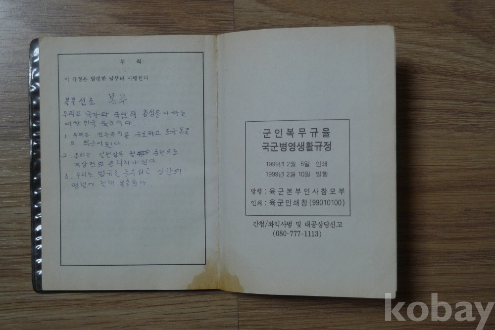 1999년 육군본부 군인 복무 규율 및 국군 병영 생활 규칙 수첩