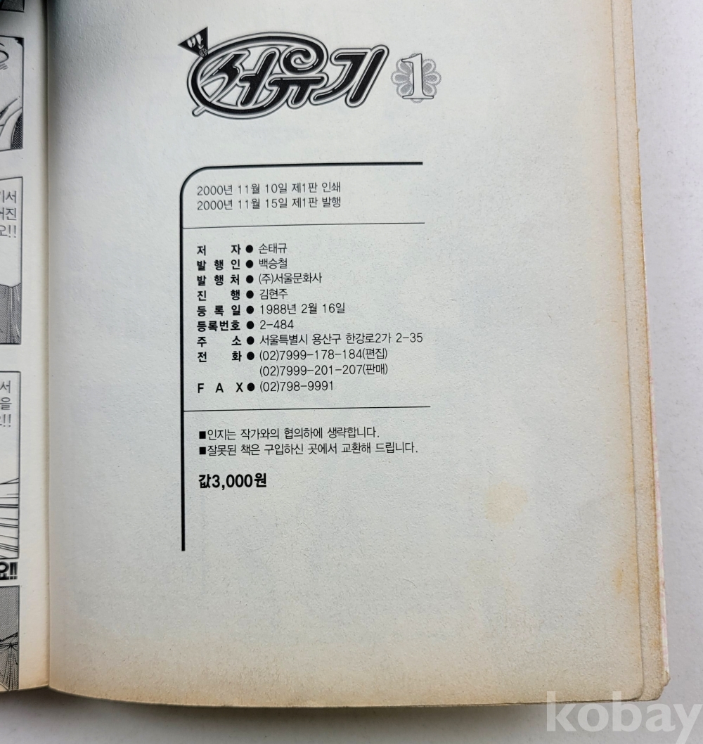 물 품 명 | 손태규 / 半(반) 서유기 (1~10)완결 총10권 / 아이큐점프코믹스 / 2000~2002년 초판 / 서울문화사 |