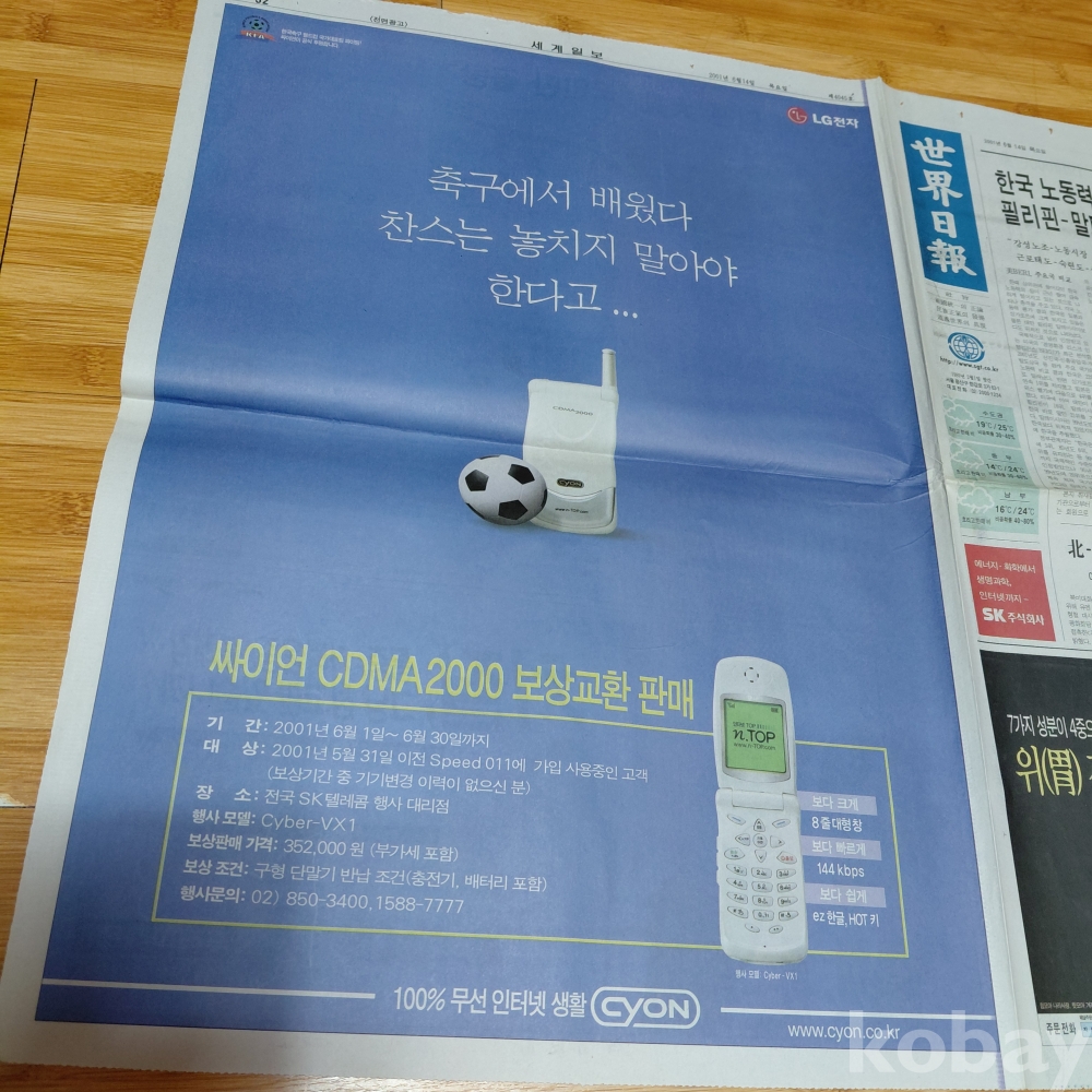 LG전자 싸이언 휴대폰 광고 세계일보 2001년 6월14일 올려드립니다