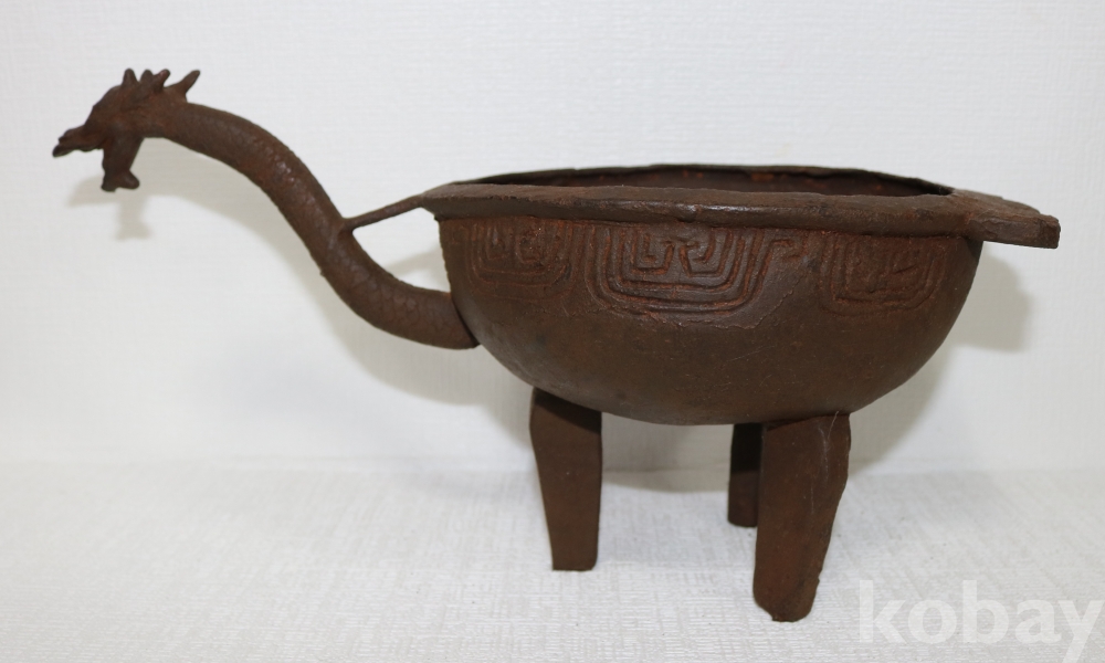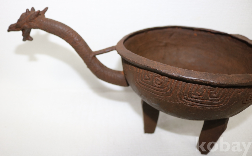 무쇠 제질의 용충문 손잡이 불씨 화로 입니다.
