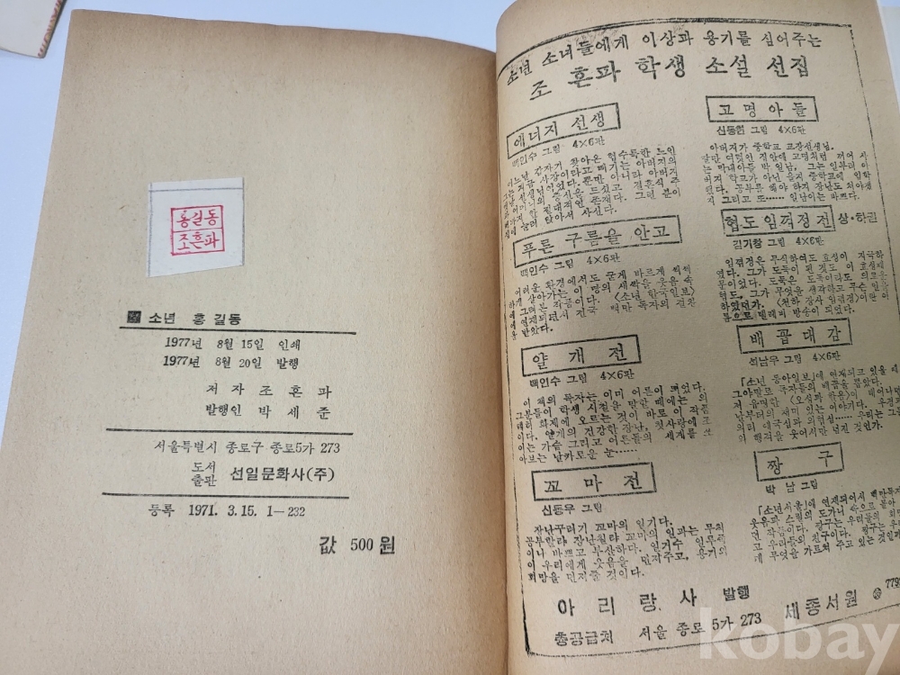 흔파학생소설선집 소년 홍 길 동 조흔파 초판 발행 입니다