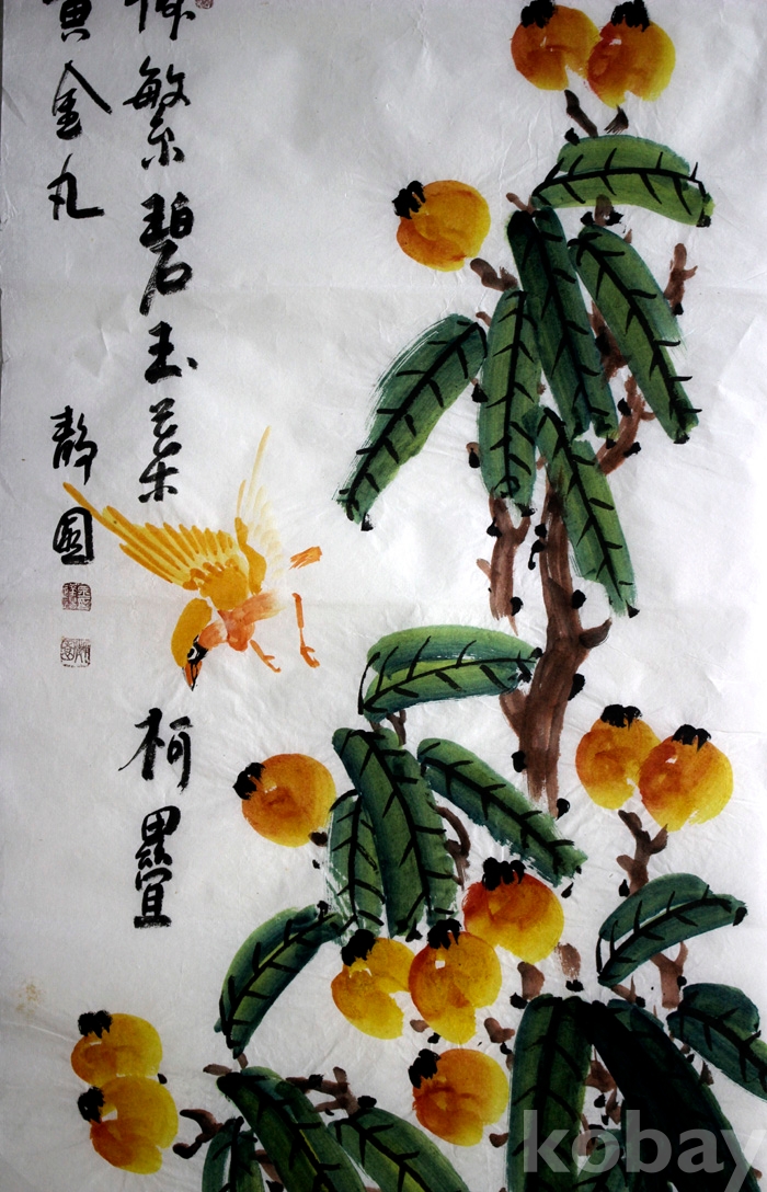 국전 입선작가인 靜園(정원) 김달석의 작품 (5) - 비파나무와 새