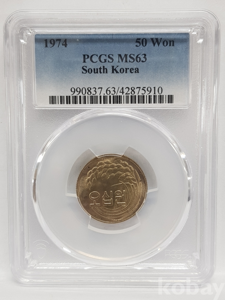 - 1974년 50원 / 50주 PCGS MS 63 그레이딩 인증 주화