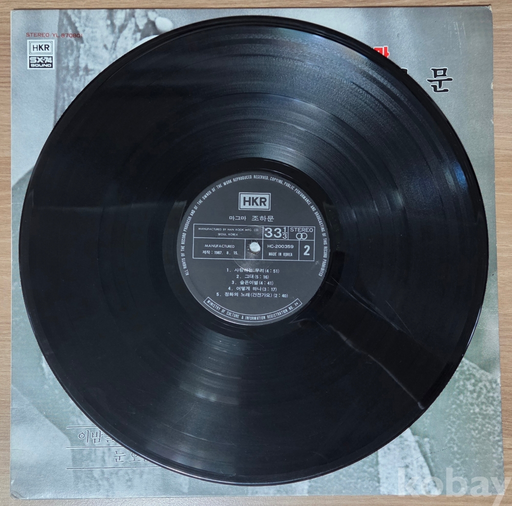 | 자켓상태 | EX : 약간의 마모, 모서리 찢김 존재 | 음반상태 | G : 눈에 띄는 스크래치, 튐 또는 노이즈 발생 | 발매정보 | 알수없음 | 가사지여부 | 유 |