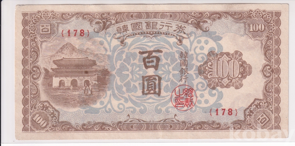 - 한국은행 1950년 광화문 백원 판번호 178번 극미 지폐