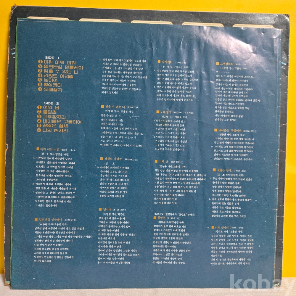 | 자켓상태 | EX : 약간의 마모, 모서리 찢김 존재 | 음반상태 | EX : 재생에 영향 없는 가벼운 기스 존재 | 발매정보 | 초반 | 가사지여부 | 유 |