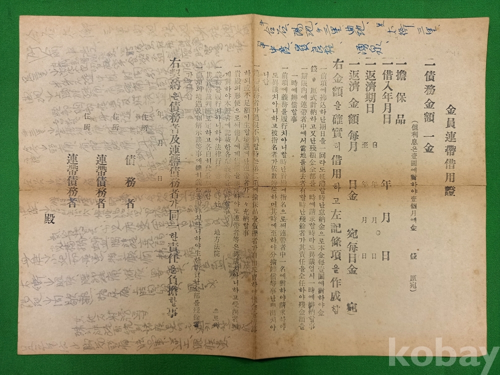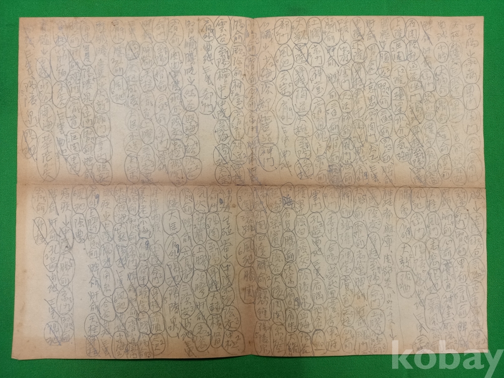 접힌 부분 헤짐 및 색바램 등 세월의 흔적 있으며 볼펜 연필로 쓴 글씨 있습니다