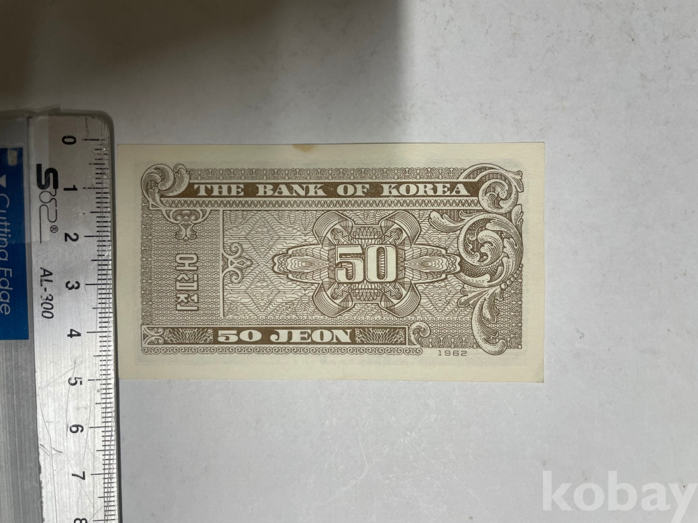 1962년 발행된 오십전 지폐 미사용 1장입니다.