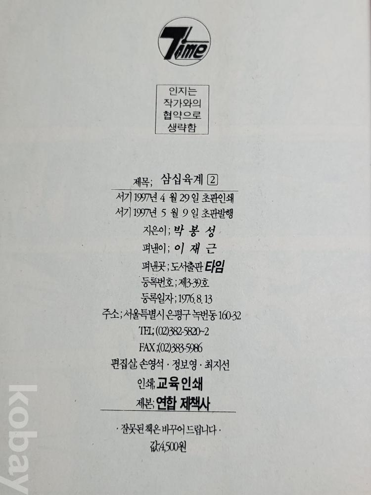 <투킴스> 1997. 박봉성작 삽십육계2- 만화책