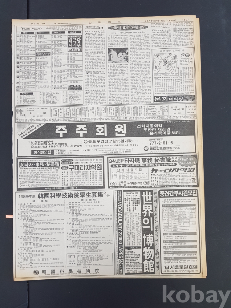 **** 1987.07.16(한국일보)/로켓트보일러 광고 등/12면