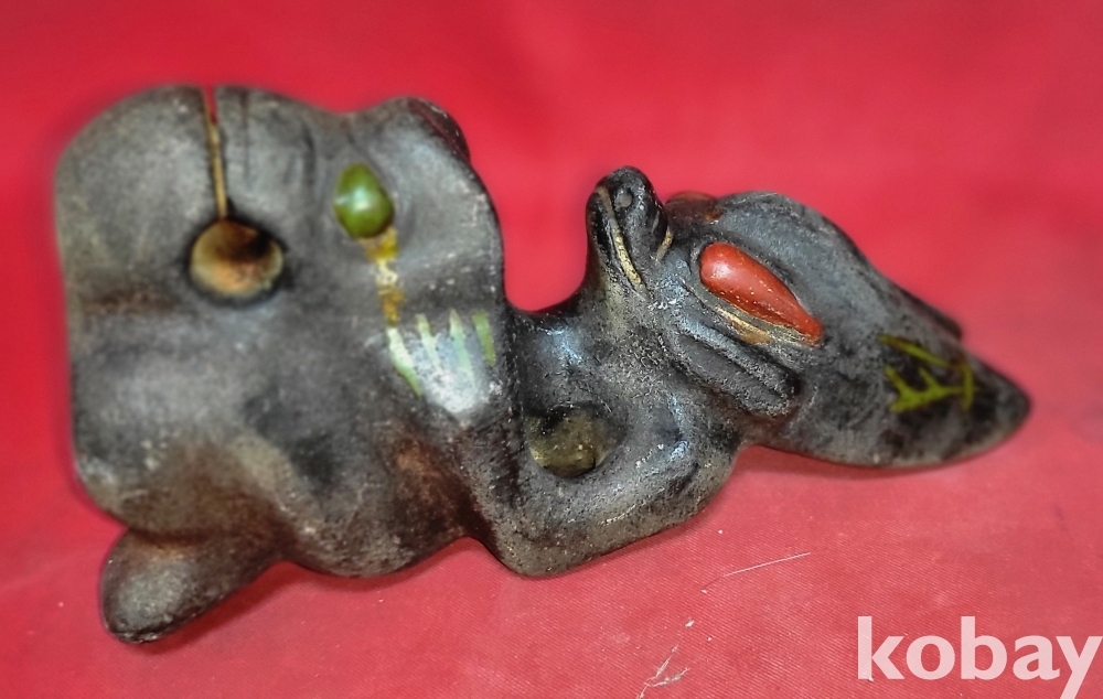 일반 홍산문화와는 다르게 흑옥에 홈을 파고 그 위에 다른 물질을 입사한 특별한 기물입니다,