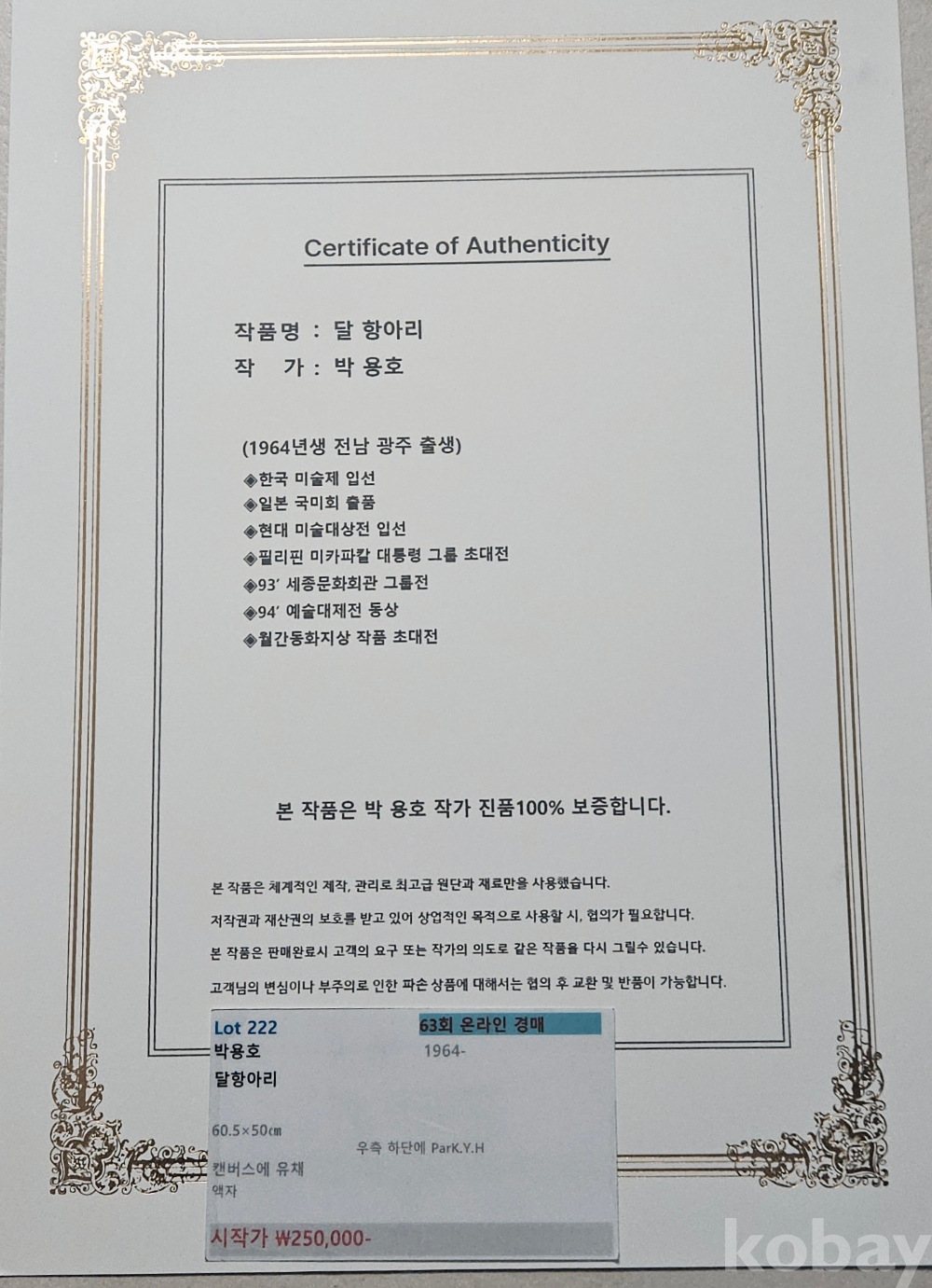 작품규격 50CM*61CM(12호) 캔버스에 유화및 혼합재료 (작가 보증서 첨부)