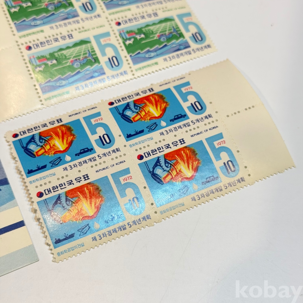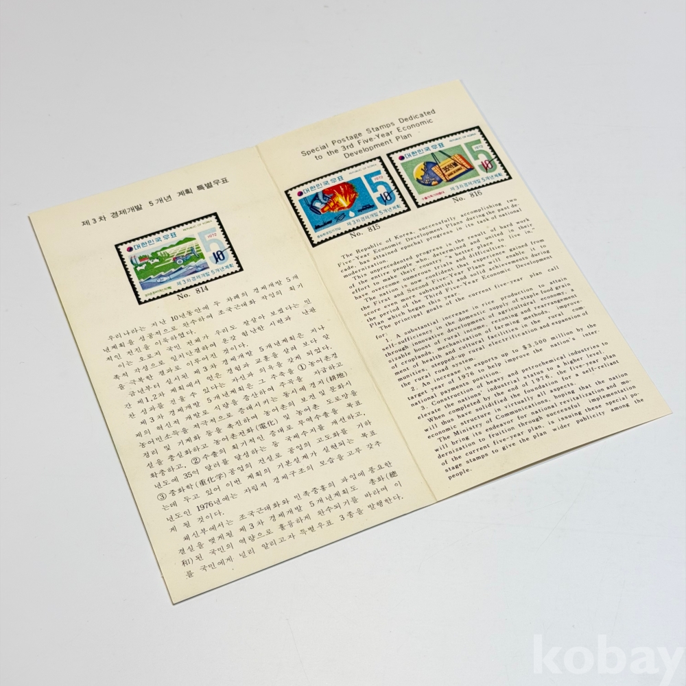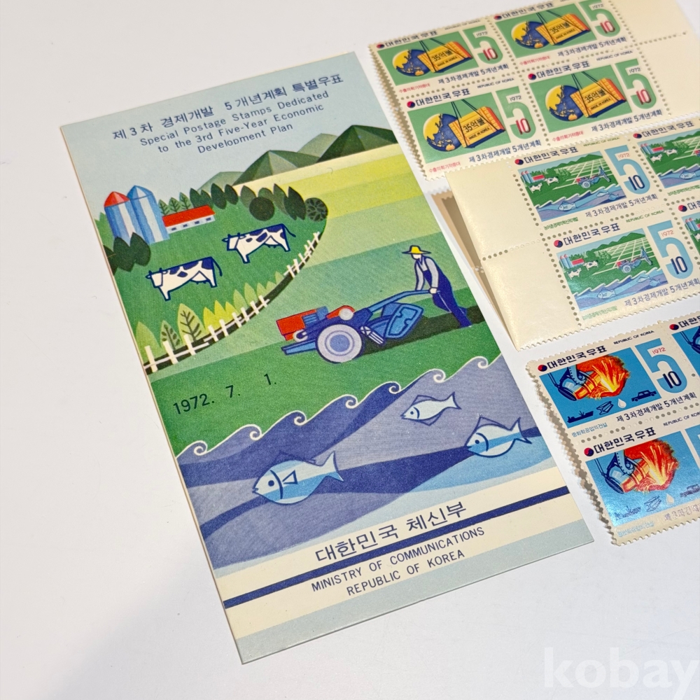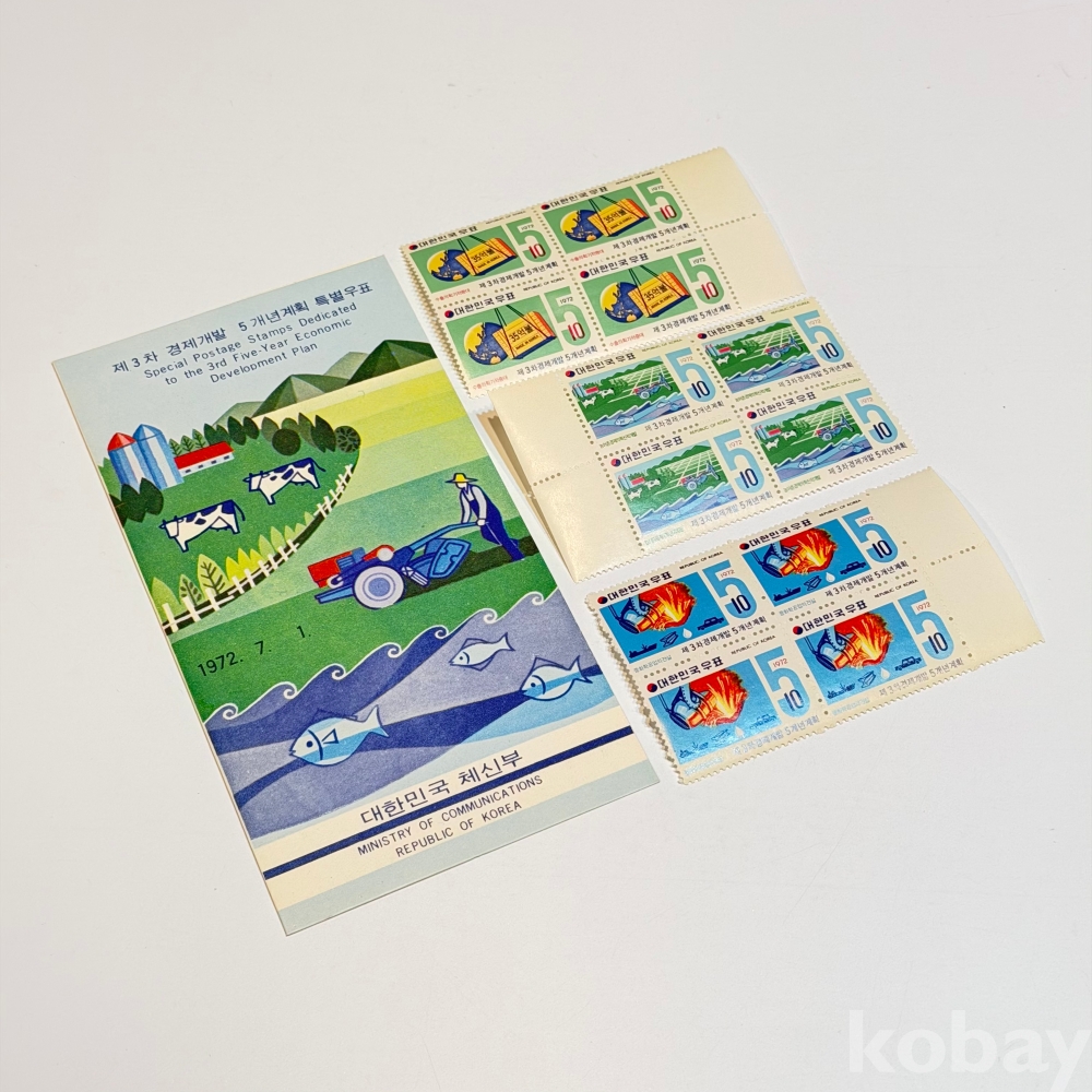 1972년, 제3차 경제개발 5개년계획 안내카드/ 4매 우표 3종