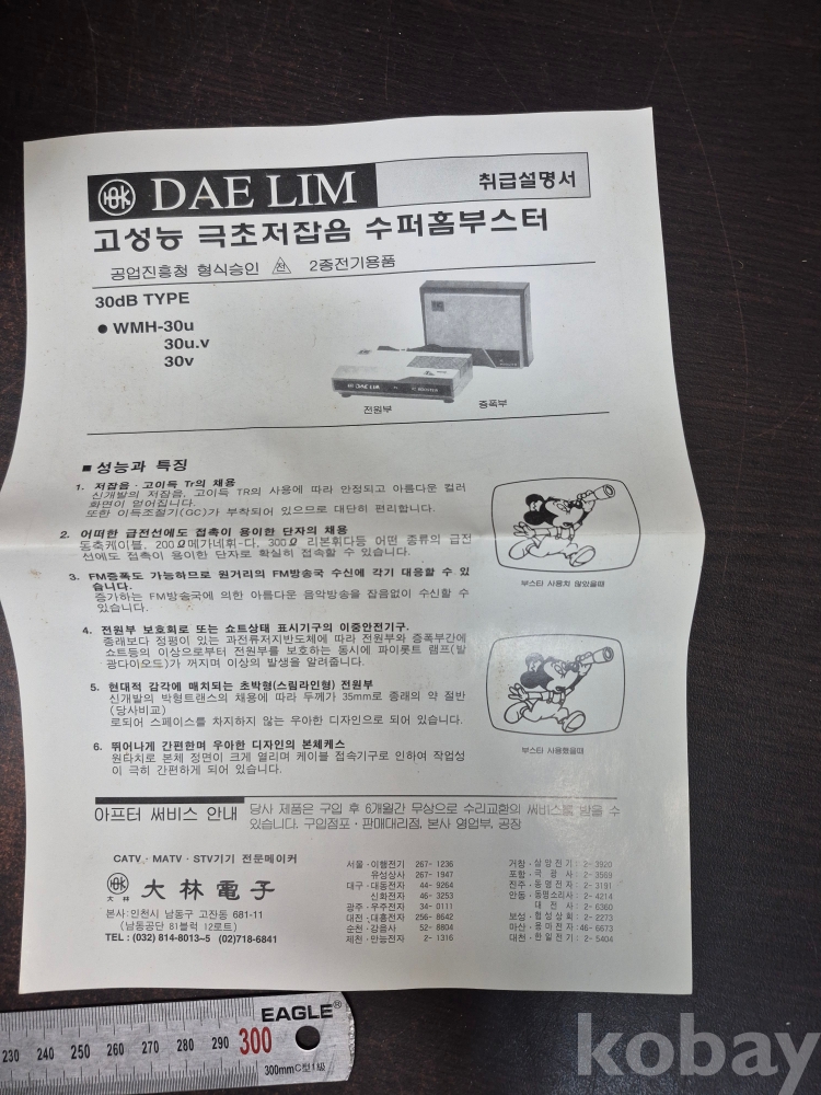 1990년대 대림전자 고성는 초저잡음 수퍼 부스터 칼라 부트섵 FM VHF UHF 용 미사용 박스품 22*16*7