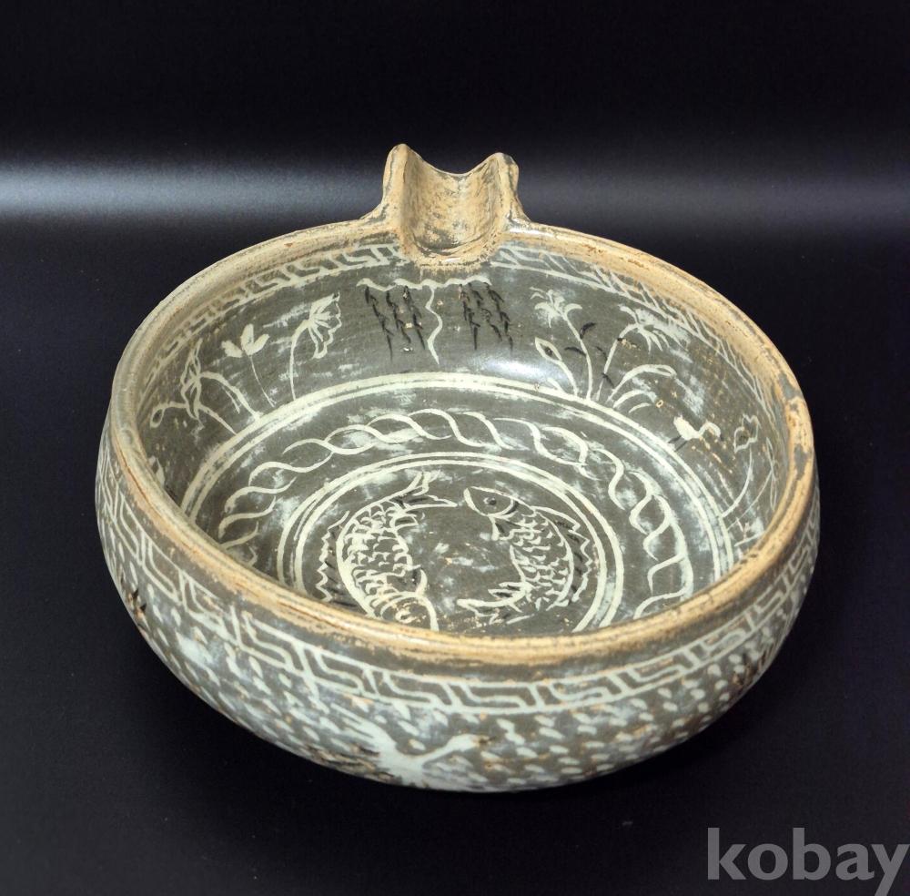 일반적으로 분청자는 조선 초에 많이 만들어 졌으며, 이 기물도 태토를 보면 고려청자의 태토와 색깔이 같아서, 어쩌면 고려말 기물이 아닌가 생각되기도 합니다.